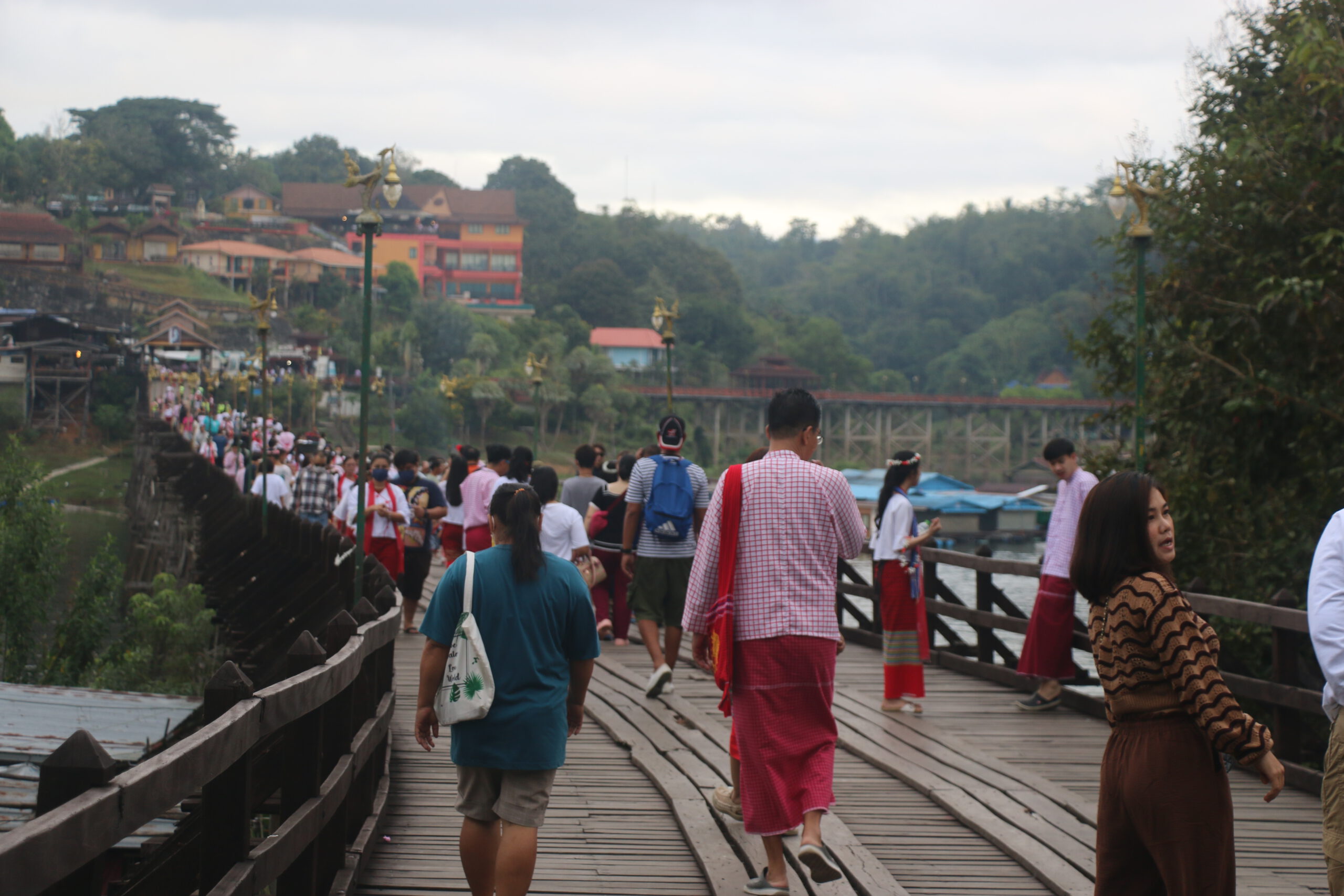 กาญจนบุรี บรรยากาศท่องเที่ยวอำเภอสังขละบุรียังคึกคัก นักท่องเที่ยวแห่รับลมหนาว สัมผัสกลิ่นไอวัฒนธรรมและธรรมชาติ