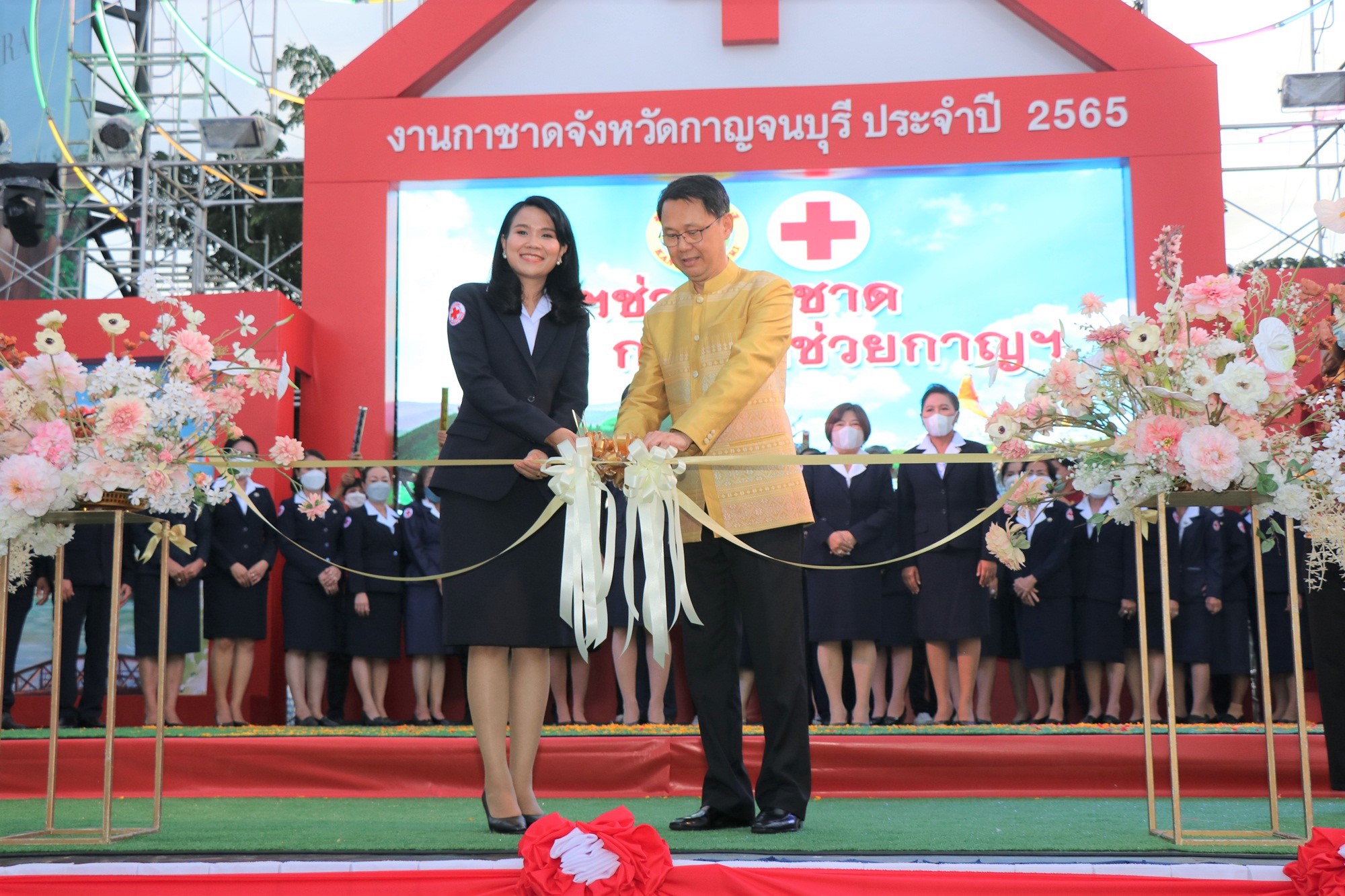 เมื่อเวลา 18.00 น.ของวันที่ 26 พฤศจิกายน 2565 ที่ร้านกาชาดจังหวัดกาญจนบุรี บริเวณลานข้างองค์การบริหารส่วนจังหวัดกาญจนบุรีและสะพานข้ามแม่น้ำแคว อำเภอเมือง จังหวัดกาญจนบุรี รศ. แพทย์หญิง .เรวิกา ไชยโกมินทร์ นายกเหล่ากาชาดจังหวัดกาญจนบุรี เป็นประธานเปิดร้านกาชาดจังหวัดกาญจนบุรีในงานสัปดาห์สะพานข้ามแม่น้ำแควและงานกาชาด ประจำปี 2565 พร้อมด้วย ร้อยโท ทศพล ไชยโกมินทร์ ผู้ว่าราชการจังหวัดกาญจนบุรี นายกองเอก พงศธร ศิริสาคร รองผู้ว่าราชการจังหวัดกาญจนบุรี โดย นางกษยา เหลืองสะอาด ผู้แทนสมาชิกเหล่ากาชาดจังหวัดกาญจนบุรี กล่าวรายงานวัตถุประสงค์ของการจัดงานฯ และ สมาชิกเหล่ากาชาดจังหวัดกาญจนบุรี หัวหน้าส่วนราชการ นายอำเภอ ทหาร ตำรวจ เจ้าหน้าที่ ภาคเอกชน และประชาชน เข้าร่วมฯ