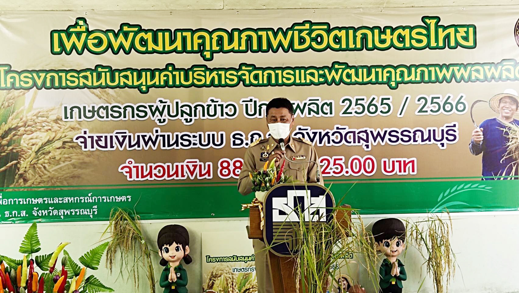 สุพรรณบุรี ธ.ก.ส.จ่ายเงินช่วยเหลือเกษตรกรสนับสนุนค่าบริหารจัดการและพัฒนาคุณภาพผลผลิต