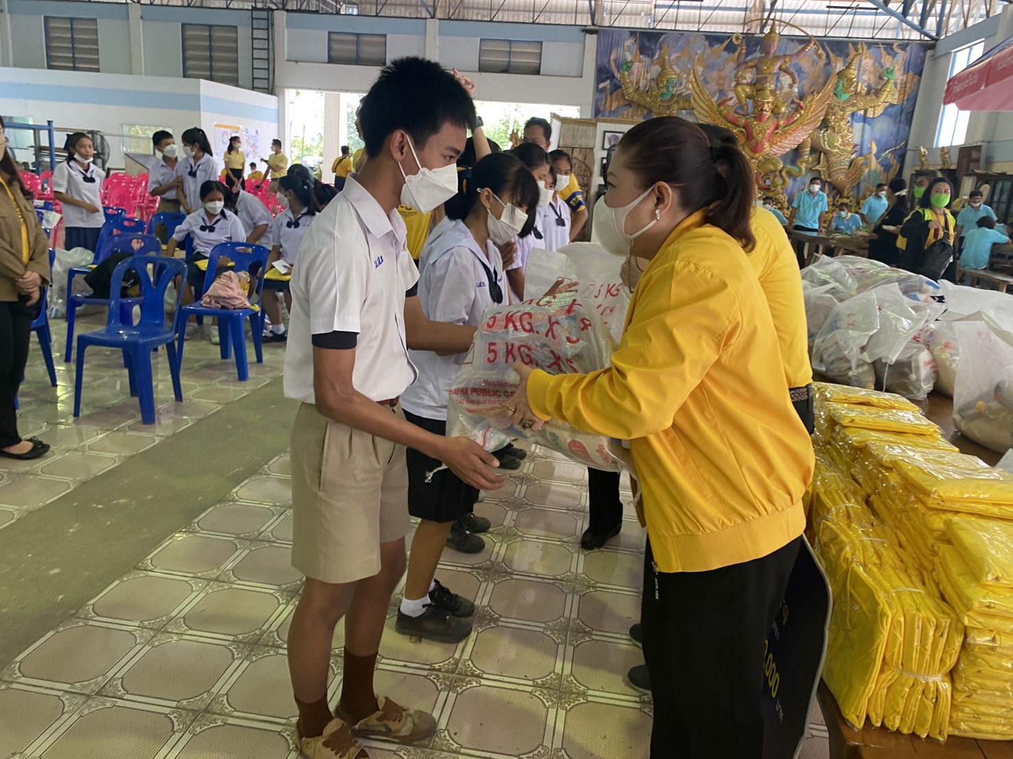 ซึ่งก่อนที่จะเข้าฐานการเรียนรู้ต่างๆ ได้มีพิธีมอบถุงยังชีพ เพื่อเยียวยาชาวบ้านวิเศษชัยชาญและบุคลากรศูนย์ศิลปอาชีพสีบัวทอง 400 ครอบครัว พร้อมทั้งมอบหนังสือ “มรดกแห่งแผ่นดิน” จากโครงการแสงสว่างแห่งปัญา ให้กับโรงเรียนวัดสีบัวทอง จ.อ่างทองอีกด้วย