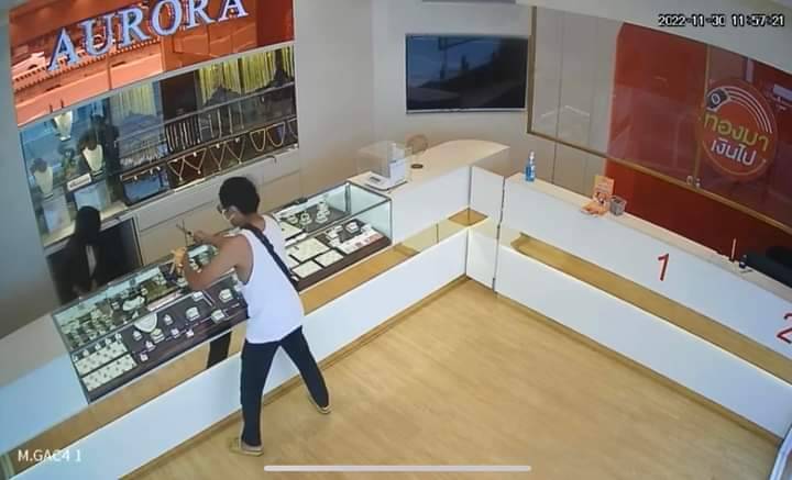 พ.ต.อ.มนัสเวท ทองอิ่ม ผกก.สภ.คูคต เปิดเผยว่า จากการสอบสวนเบื้องต้น ทราบว่าขณะเกิดเหตุมีพนักงานหญิงอยู่ในร้ายจำนวน 2 คนเวลา1 1.56 น. มีคนร้ายชาย1คน ใช้จยย.ยี่ห้อฮอนด้ารุ่นเวฟสีขาวไม่ติดแผ่นป้ายทะเบียน คนร้ายสวมเสื้อกร้าม สีขาว สวมหน้ากากอนามัยสีขาว สวมแว่นสายตา ใส่กางเกงขายาวสีดำ ใช้อาวุธมีดปลายแหลมยาวประมาณ 15 เซนติเมตร เข้ามาข่มขู่พนักงานหญิงก่อนจะเข้าทางประตูเข้าออกเคาน์เตอร์แล้วเข้าไปคว้าสร้อยคอทองคำใส่มือ แล้วใช้มืออีกข้าวหนึ่งแกว่งมีดไปมา ก่อนจะพยายามจะออกจากประตูนิรภัยแต่พนักงานได้กดปิดไว้ คนร้ายจึงใช้อาวุธมีดข่มขู่พนักงานเพื่อให้เปิดประตู แล้วขึ้นจยย.แล้วชับหลบหนีไปมุ่งหน้าถนนลำลูกกา โดยคนร้ายนได้ทองคำรูปพรรณจำนวน 29 เส้นเส้นละ1บาท รวมค่าความเสียหายกว่า 870,000 บาท แล้วหลบหนีไป