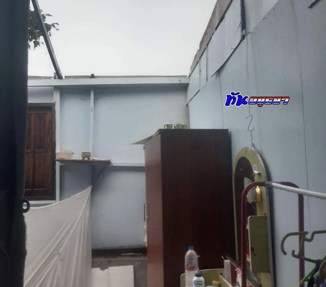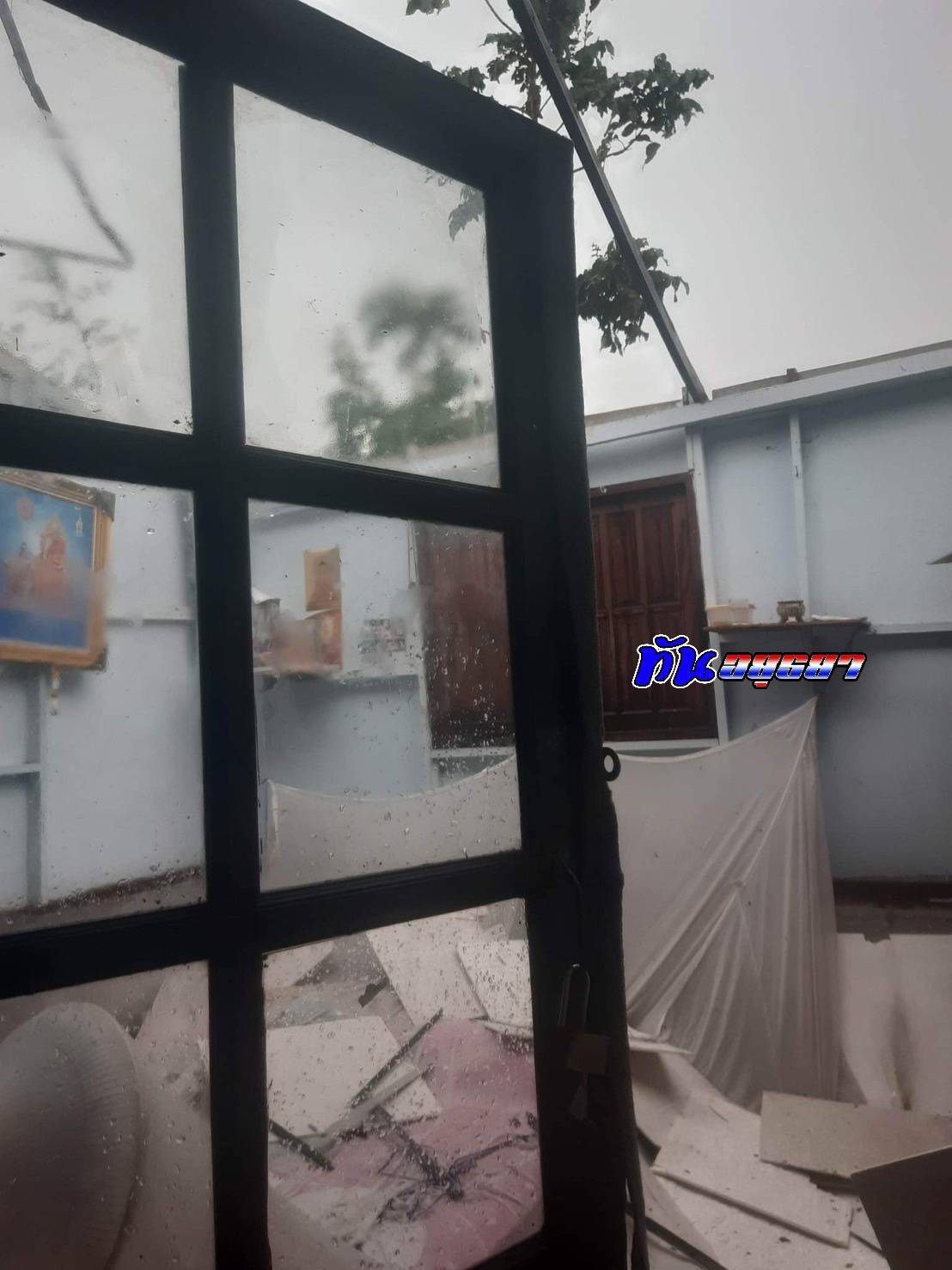 โดยบ้านของตนเองโชคร้าย ตั้งตรงกับช่องทาง พัดผ่านของแรงลมพายุพอดี ทำให้ลมพายุพัดเอาลังคาบ้านของตนเอง ปลิวหลุดไปเกือบทั้งหลัง และน้ำฝนที่ตกลงมา ได้สร้างความเสียหาย ให้กับสิ่งของในบ้านเกือบทั้งหมด ผู้คนในบ้าน 7 คน ตกใจวิ่งหนีเอาชีวิตรอด แต่โชคดีไม่มีใครบาดเจ็บหรือเสียชีวิต