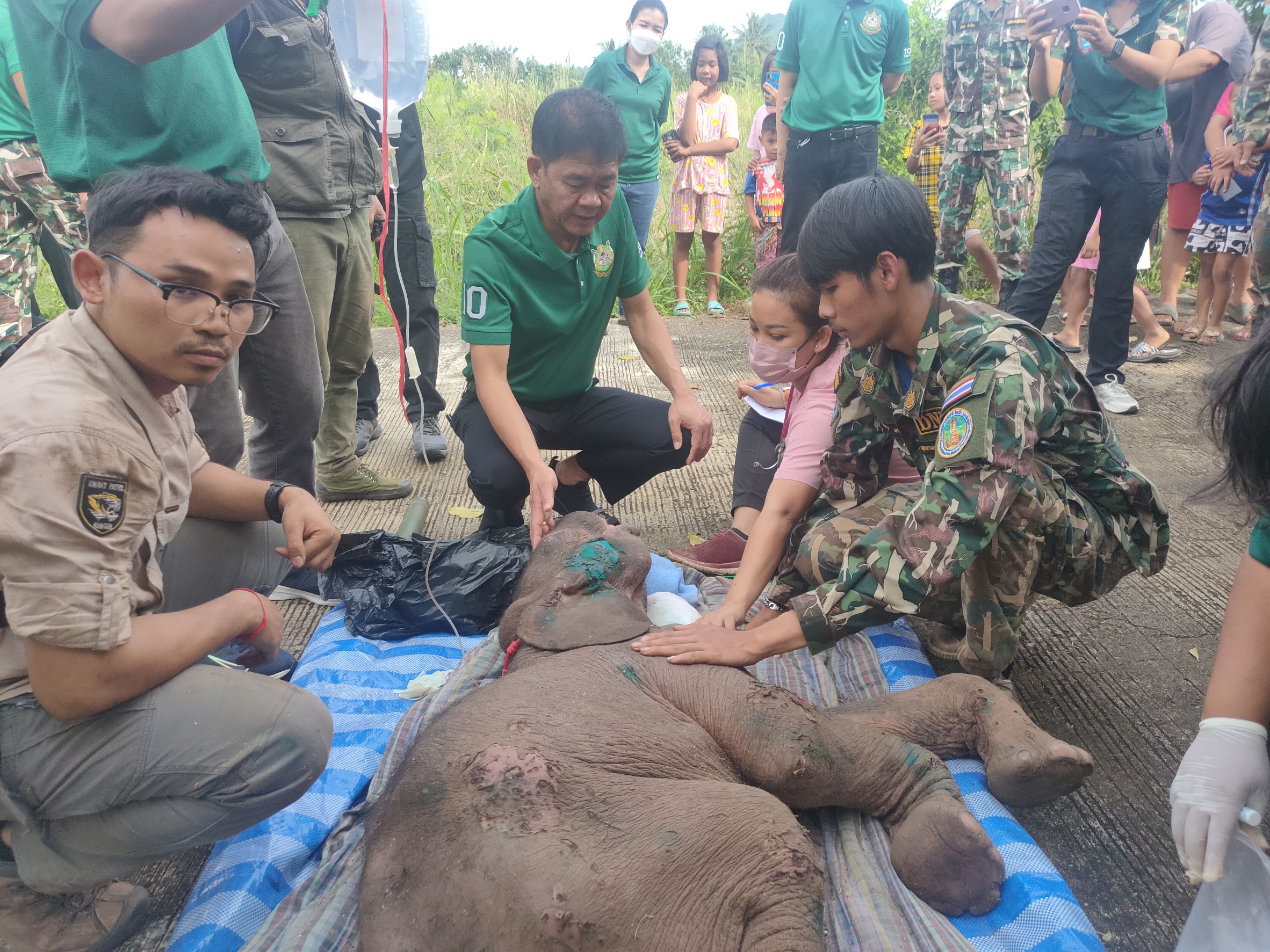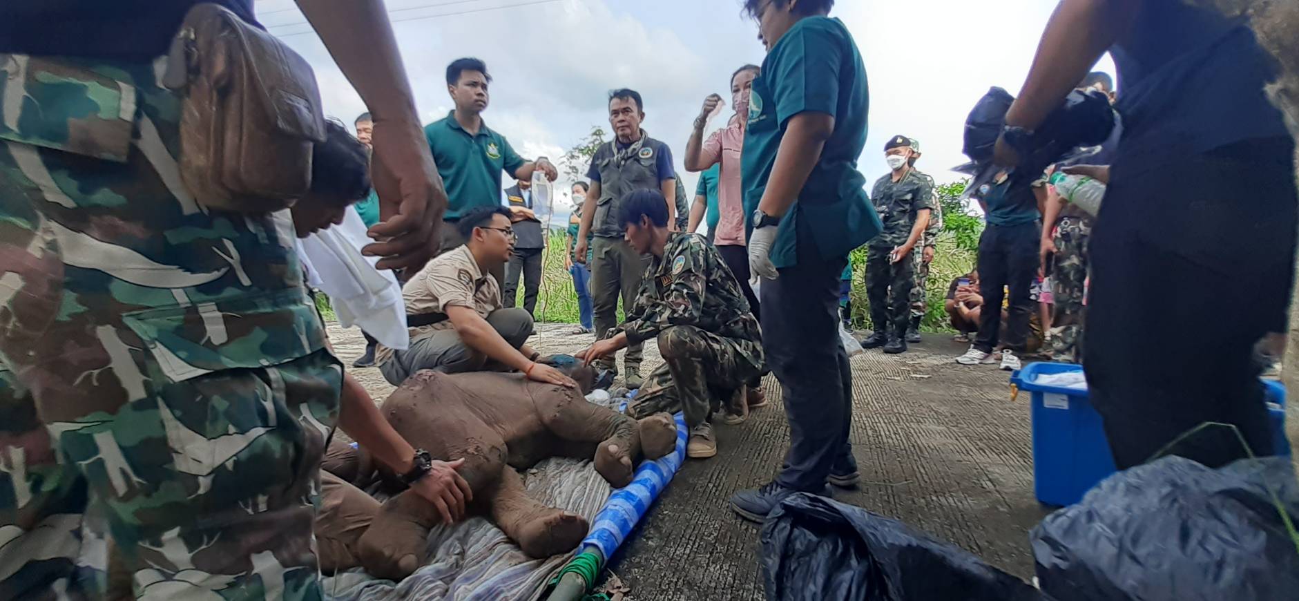 นำลูกช้างส่งต่อเพื่อพักรักษาตัว ณ อาคารอเนกประสงค์ซึ่งเตรียมความพร้อมสถานที่โดยการฆ่าเชื้อโรคเรียบร้อย และมีความพร้อมด้านยารักษา อุปกรณ์ที่มีประสิทธิภาพ ทำการวางแผนการรักษาฟื้นฟูลูกช้างต่อไป