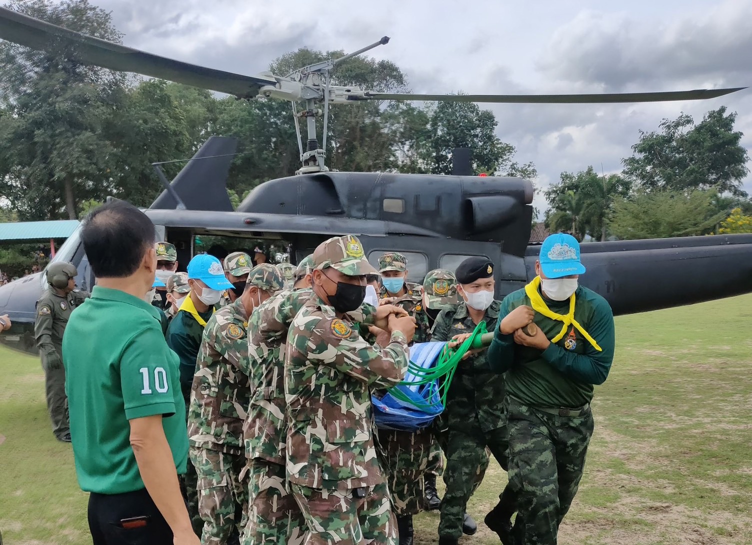 เมื่อเวลา 8.00 น. เฮลิคอปเตอร์ทหาร ภายใต้การกำกับการของ พลตรี วุทธยา จันทมาศ ผู้บัญชาการกองกำลัง สุรสีห์ พ.อ.รณวรรณ พจน์สถิตย์