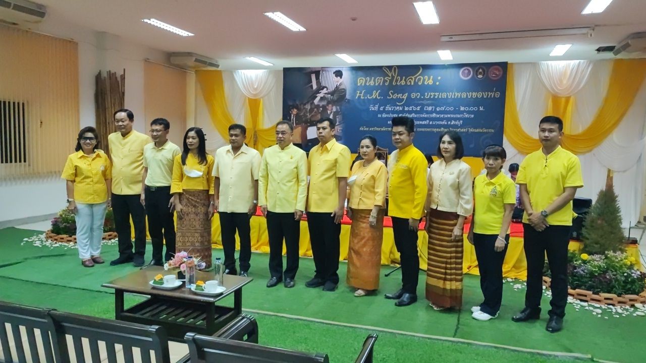 มรภ.เทพสตรี และกระทรวงอว. ชวนปชช.จ.สิงห์บุรี พร้อมใจใส่เสื้อเหลือง ร่วมงาน งานดนตรีในสวน : H.M. Song อว. บรรเลงเพลงของพ่อ เทิดพระเกียรติ ร.9