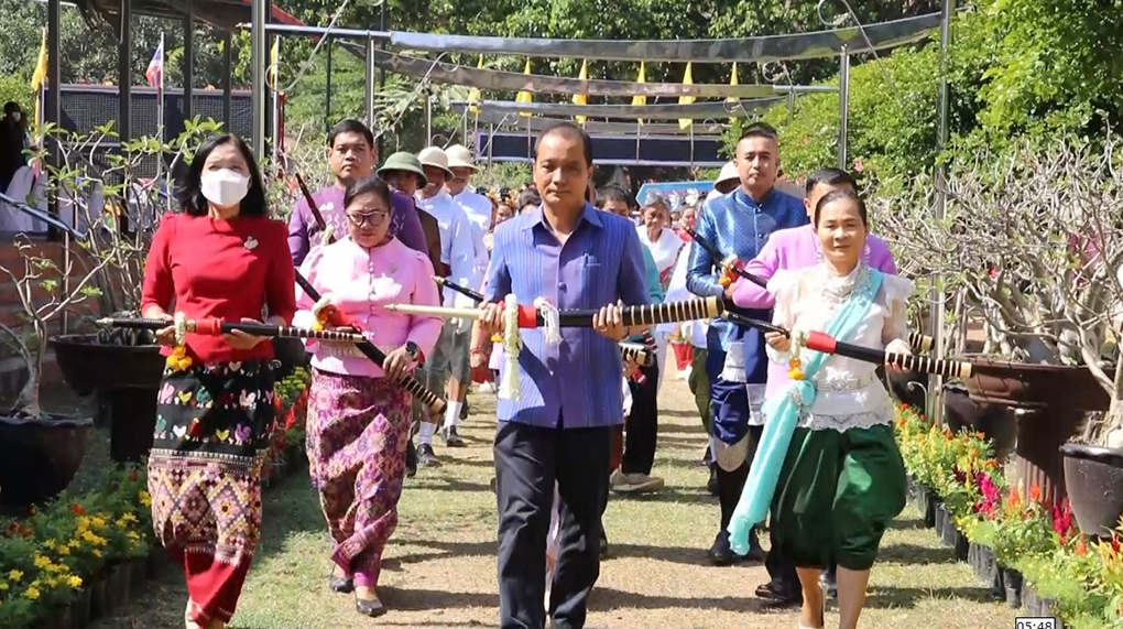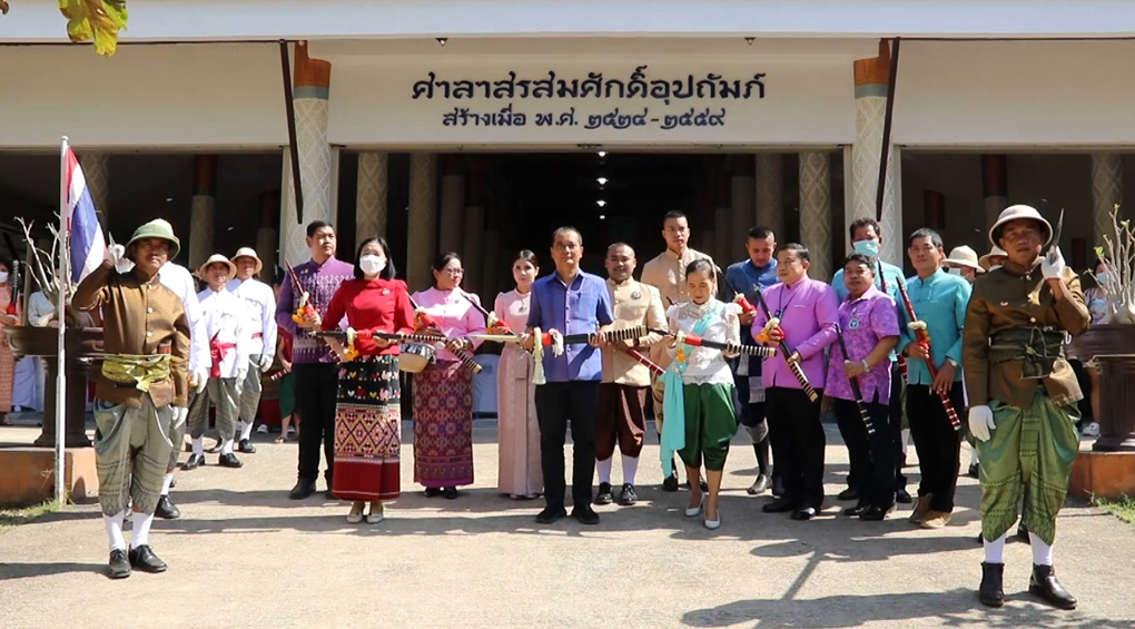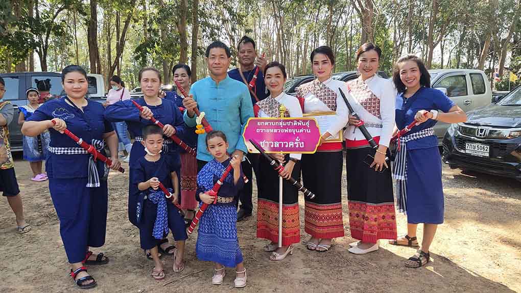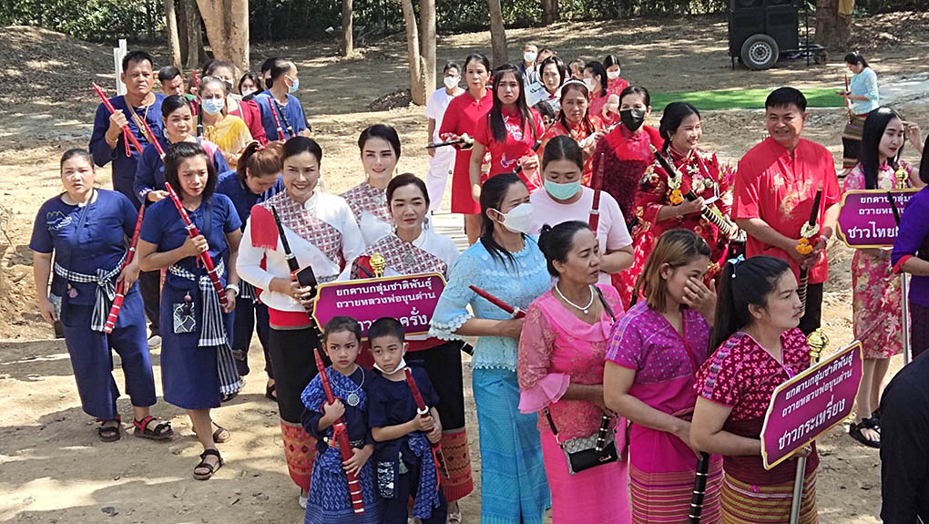 สุพรรณบุรี วัดดงเสลาอนุรักษ์ประเพณีนุ่งชุดไทยมายกดาบชาติพันธุ์ถวายหลวงพ่อขุนด่าน