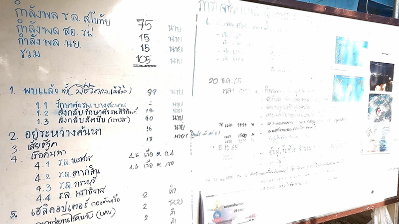 สำหรับการปฎิบัติในวันนี้ ประกอบกำลังด้วย รล.ตากสิน รล.กระบุรี รล.นราธิวาส รล.นเรศวร เรือ ต .113 เรือ ต. 114 อากาศยานกองทัพเรือโดยจะไปโฟกัสเข้มข้น ในส่วนของชายฝั่งจะปูพรมตั้งแต่จุดที่บางสะพาน จ.ประจวบ ชุมพร และ สุราษฎร์ ขอบชายฝั่งทั้งหมด โดยประจวบเช่นเกาะทะลุ ได้จัดเรือทรัพยากรทางทะเลและชายฝั่ง 312 และป้องกันภัยจังหวัด จำนวน 6 ลำ โดนของบริษัทลมสิงขร และเจ้าหน้าที่เดินเท้าสำรวจออกค้นหาจากท่าเทียบเรือเกาะทะลุ ผ่านหลังแนวเกาะทะลุซึ่งขณะนี้ได้ปฏิบัติการอยู่ นอกจากนี้ยังมี กำลังพลเดินเท้าจากมูลนิธิของจังหวัดประจวบ เรือยาง เรือท้องบี เจ็ตสกี รวมทั้งหมด 14 ลำ ออกค้นหาจากท่าเรือบางสะพานถึงบางสะพานน้อย ค้นหาชายฝั่ง