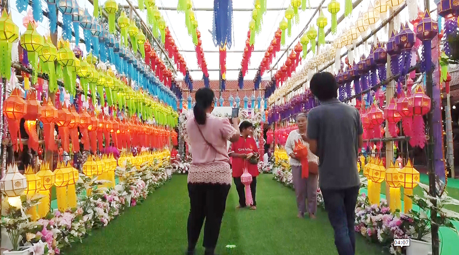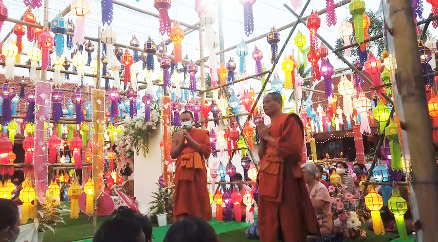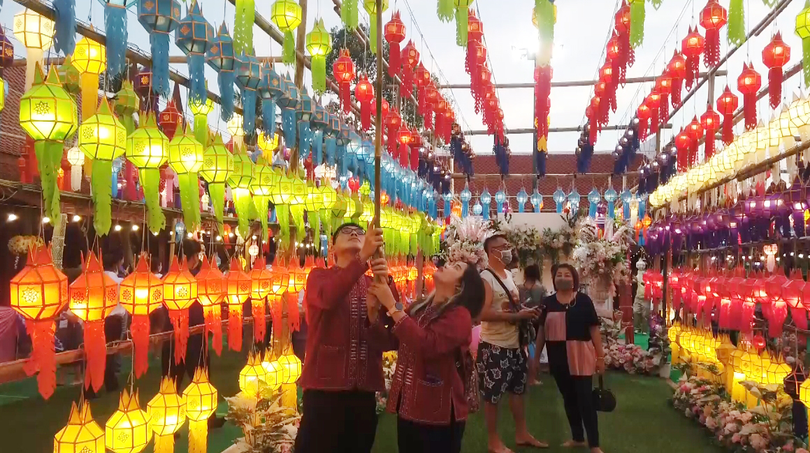 สุพรรณบุรี สาธุชนร่วมบุญแขวนโคมล้านนาบูชาพระบรมสารีริกธาตุสวยงามตระการตา1เดียวในสุพรรณ
