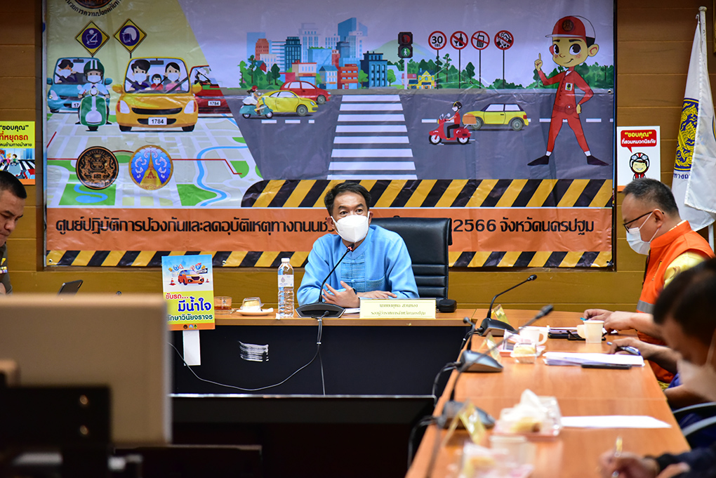 ในส่วนจังหวัดนครปฐม เป็นจังหวัดที่มีถนนสายหลักลงสู่ภาคใต้และออกสู่ภาคตะวันตก จึงได้กำหนดเป้าหมาย ลดจำนวนครั้ง ผู้บาดเจ็บ และผู้เสียชีวิตจากอุบัติเหตุทางถนนในช่วงเทศกาลปีใหม่ 2566 โดยให้มีการเตรียมความพร้อมในทุกด้าน และบูรณาการการทำงานจากทุกภาคส่วน เพื่อสร้างความปลอดภัยให้กับผู้ใช้รถใช้ถนน มีการตั้งจุดตรวจ/จุดบริการประชาชน บังคับใช้กฎหมายที่เกี่ยวข้องอย่างเคร่งครัด กวดขันวินัยจราจร ตรวจเข้มกับผู้ขับขี่หรือโดยสารที่ดื่มแล้วขับ ขับรถเร็วเกินกฎหมายกำหนด และขับรถตัดหน้ากระชั้นชิด โดยเฉพาะผู้ที่ขับขี่และซ้อนท้ายรถจักรยานยนต์แล้วไม่สวมหมวกนิรภัย ซึ่งเป็นพฤติกรรมเสี่ยงหลักของการบาดเจ็บและเสียชีวิตเมื่อเทศกาลปีใหม่ 2565 ที่ผ่านมา รวมทั้งให้องค์กรปกครองส่วนท้องถิ่นเข้ามาร่วมดำเนินการ โดยให้จัดตั้ง “ด่านชุมชน” “ด่านครอบครัว” และจัดให้มีถนนปลอดภัยในท้องถิ่น “1 ท้องถิ่น 1 ถนนปลอดภัย” เพื่อลดปัจจัยเสี่ยงต่าง ๆ
