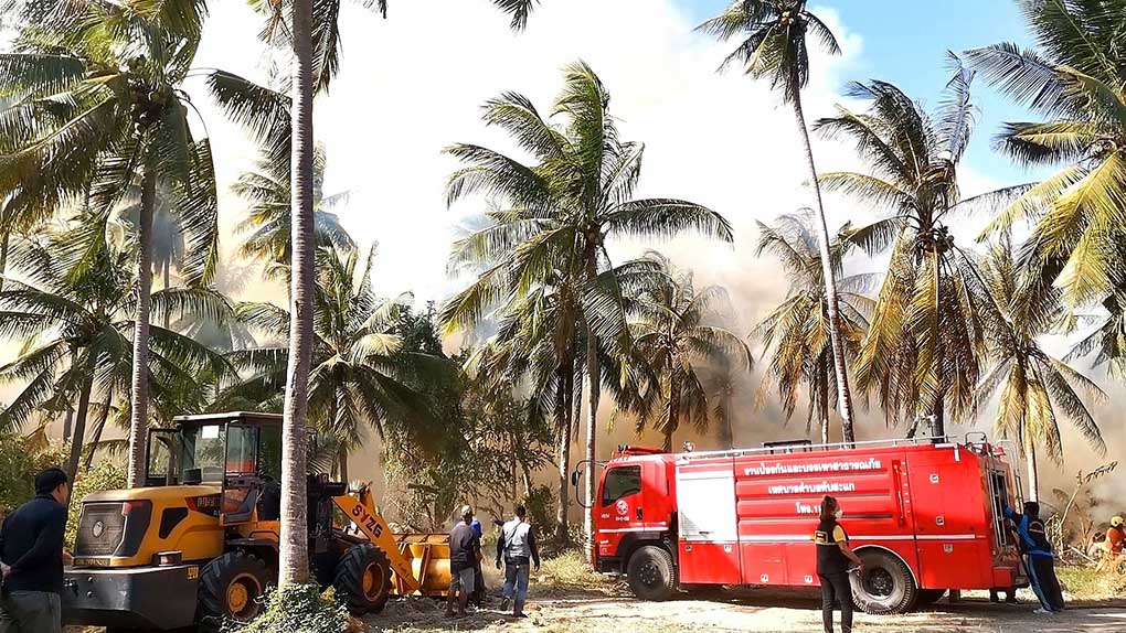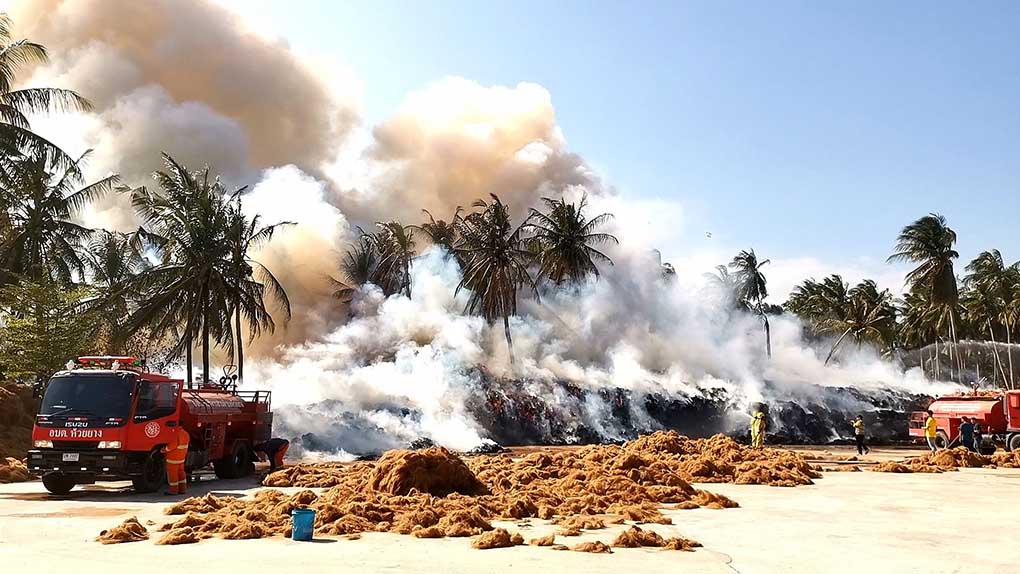 ประจวบคีรีขันธ์ เพลิงไหม้โรงงานใยมะพร้าวใช้รถดับเพลิงกว่า10คันดับไฟ