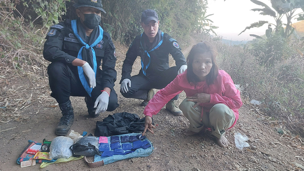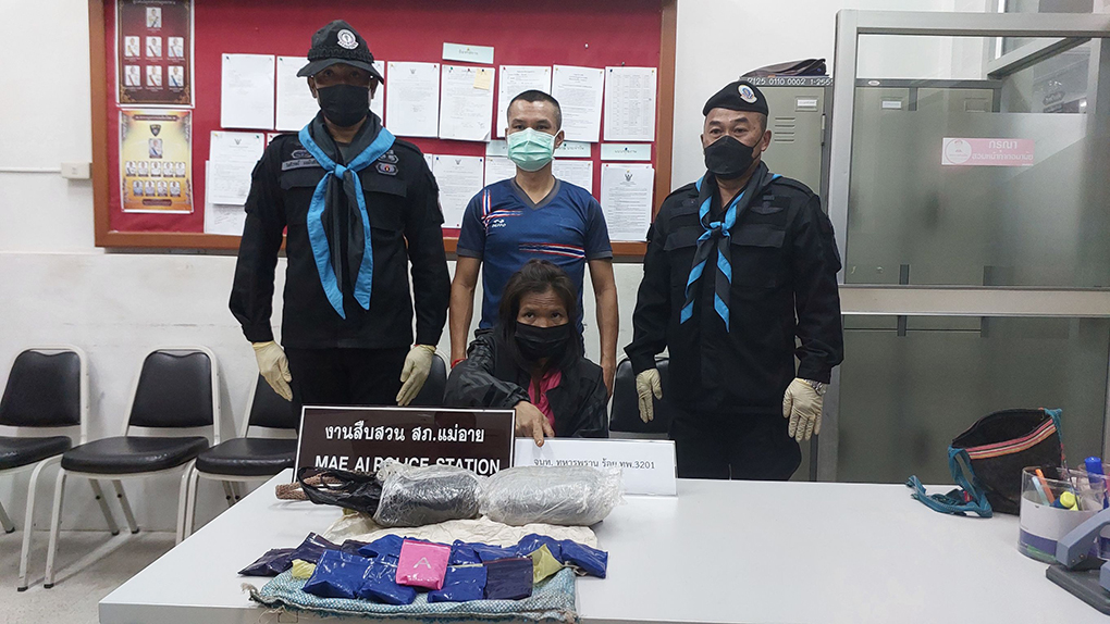 แต่บุคคลดังกล่าวฯ พยายามวิ่งหลบหนี จึงไล่ติดตามและสามารถควบคุมตัวเอาไว้ได้จากการสอบสวนทราบชื่อต่อมาคือ นางนะ อายุ 30 ปี เป็นราษฎรเชื้อสายมูเซอ บ.หมากลาง และได้ดำเนินการตรวจค้นตามร่างกาย ตรวจพบยาเสพติดให้โทษประเภทที่ 1(ยาบ้า) จำนวน 15ถุง (ถุงละ 200เม็ด) จำนวน 3,000เม็ด และฝิ่นดิบ จำนวน 2ห่อ น้ำหนักประมาณ 3.2 กก. โดยยาเสพติดทั้งหมดซุกซ่อนอยู่ตามลำตัวโดยมีสายรัดคาดเอวปิดทับอยู่ และใส่เสื้อกันหนาวปิดทับไว้ นางนาคะฯได้รับสารภาพว่าได้รับการว่าจ้างจากชายไม่ทราบชื่อเชื้อสายมูเซอให้นำไปส่งนำยาเสพติดดังกล่าว มาส่งให้กับราษฎรเชื้อสายมูเซอไม่ทราบชื่อบริเวณดังกล่าว โดยจะได้รับค่าจ้าง จำนวน 500 บาท นางนาคะฯ รับสารภาพว่าเสพยาเสพติดด้วย และได้ตรวจปัสสาวะผลเป็นบวก หน่วยจึงได้ควบคุมตัวพร้อมของกลางยาเสพติดฯ นำส่ง พนักงานสอบสวนสถานีตำรวจภูธรแม่อาย เพื่อสืบสวนขยายผล และดำเนินคดีตามกฏหมายแล้ว