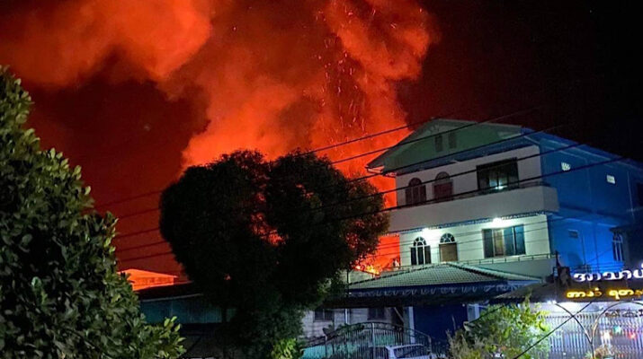 กาญจนบุรี ด่วน.เกิดปะทะในเมืองพญาตองซู เพื่อนบ้านห่างชายแดนไทยเพียง 800 เมตร เสียงปืนใหญ่ถล่มต่อเนื่อง แสงเปลวเพลิงสูงกว่าตึก 6 ชั้น ทหารชุด ฉก.ลาดหญ้าเตรียมพร้อมรับสถานการณ์