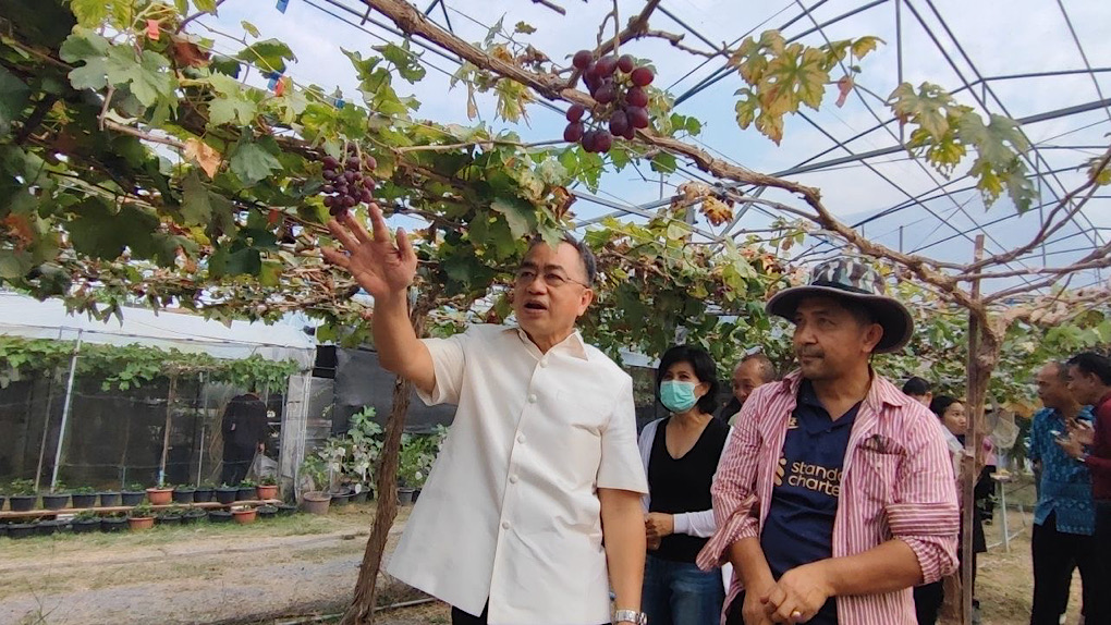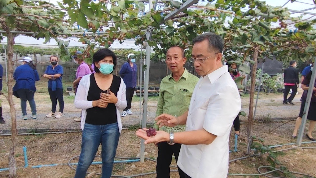 สำนักงานเกษตรจังหวัดสิงห์บุรี จัดกิจกรรมประชาสัมพันธ์ผลไม้ประจำฤดูกาลของจังหวัดสิงห์บุรี ณ สวนองุ่นแก๊สกับรอง บ้านสวนปากบาง อำเภอพรหมบุรี จังหวัดสิงห์บุรี