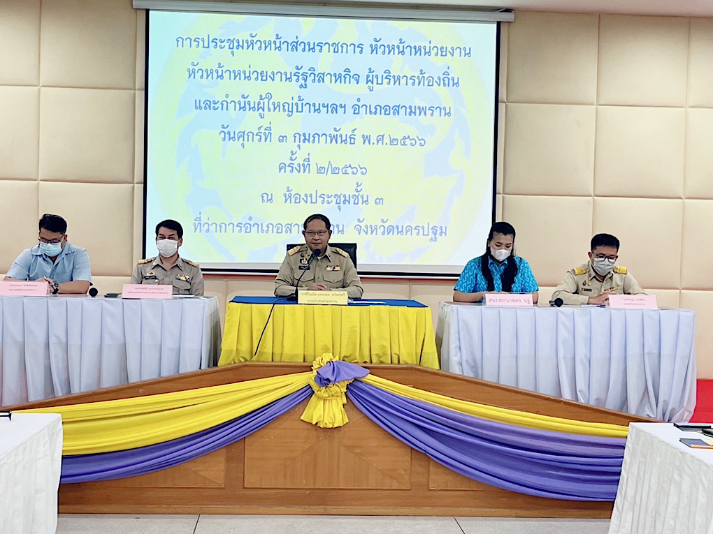 อำเภอสามพรานประชุมหัวหน้าส่วนราชการ หัวหน้าหน่วยงานรัฐวิสาหกิจ ผู้บริหารท้องถิ่นและกำนัน ผู้ใหญ่บ้าน ฯลฯ อำเภอสามพราน