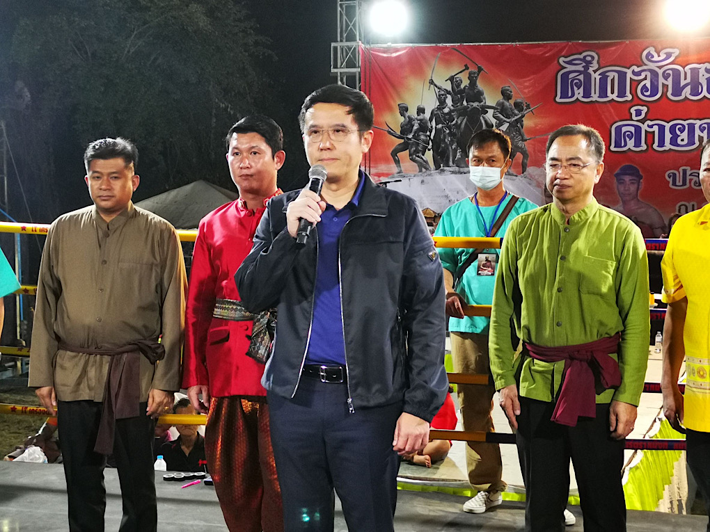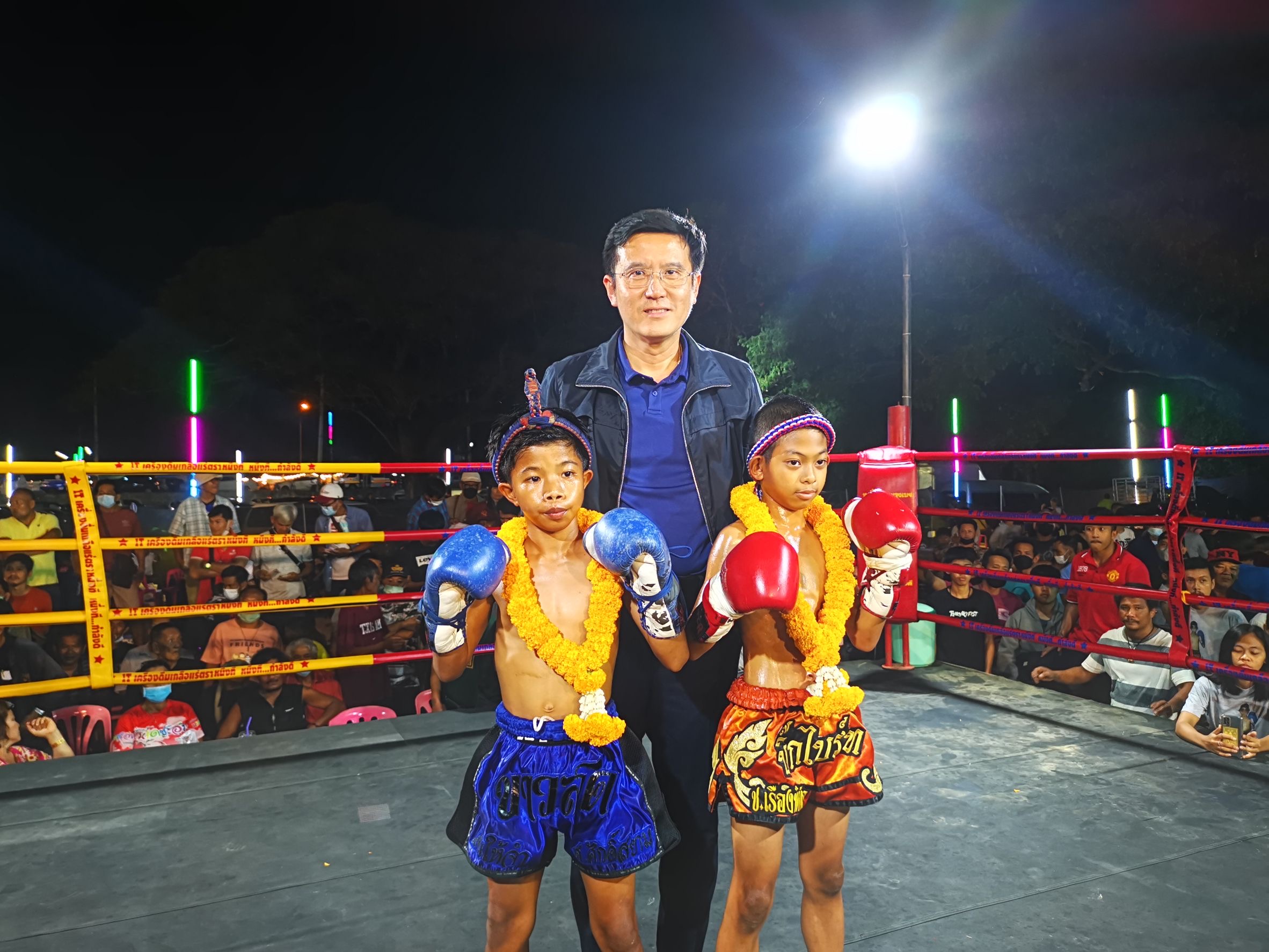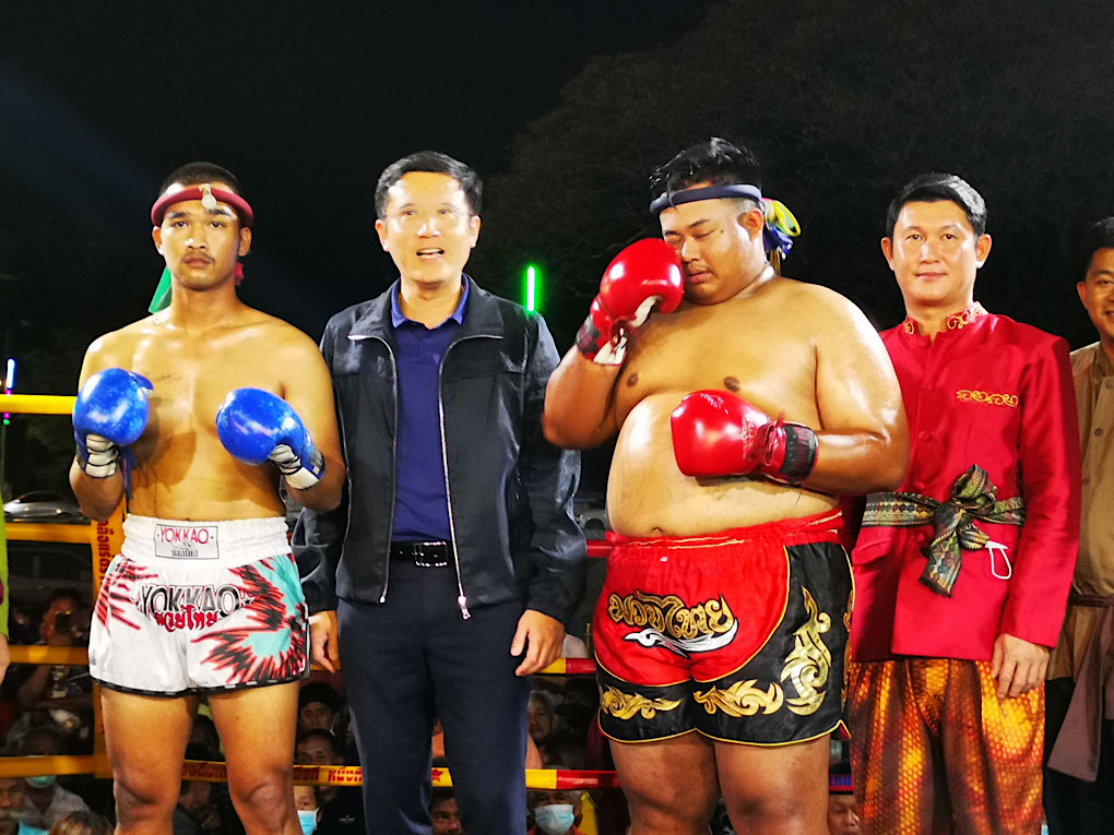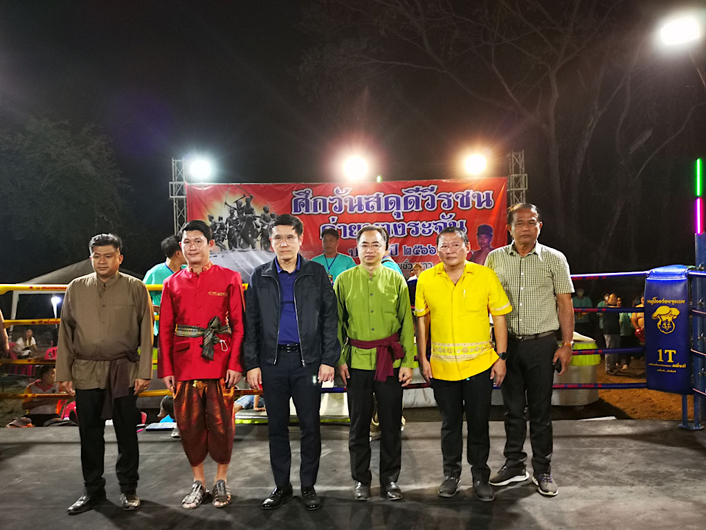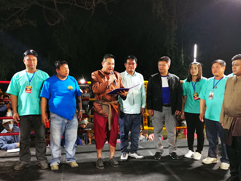 การแข่งขันชกมวยศึกวันสดุดีวีรชนค่ายบางระจันในงานสดุดีวีรชนประจำปี 2566 ณ เวทีมวยชั่วคราว บ้านโพธิ์เก้าต้น