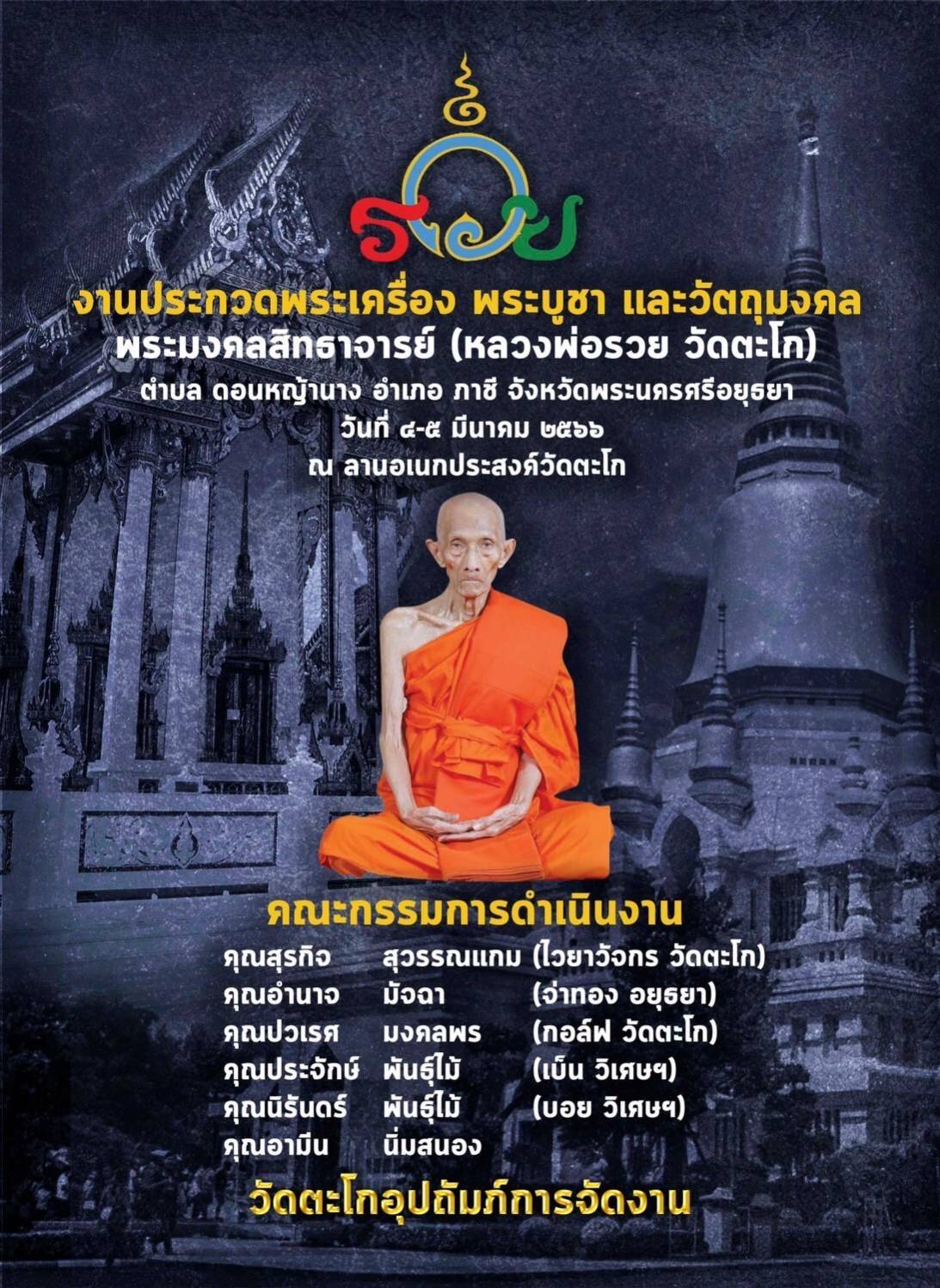 จัดงานโดย วัดตะโก และ ศิษยานุศิษย์หลวงพ่อรวย งานใหญ่ในสายวัตถุมงคล หลวงพ่อรวย แผงจรยุทธเพียบบบบบ สถานที่จอดรถหลักพันคัน กว้างขวางเป็นที่สุด สะดวก