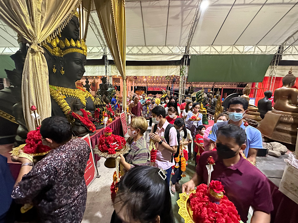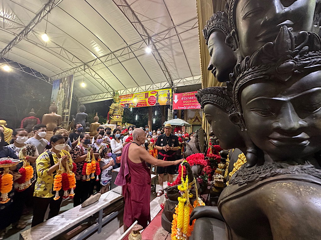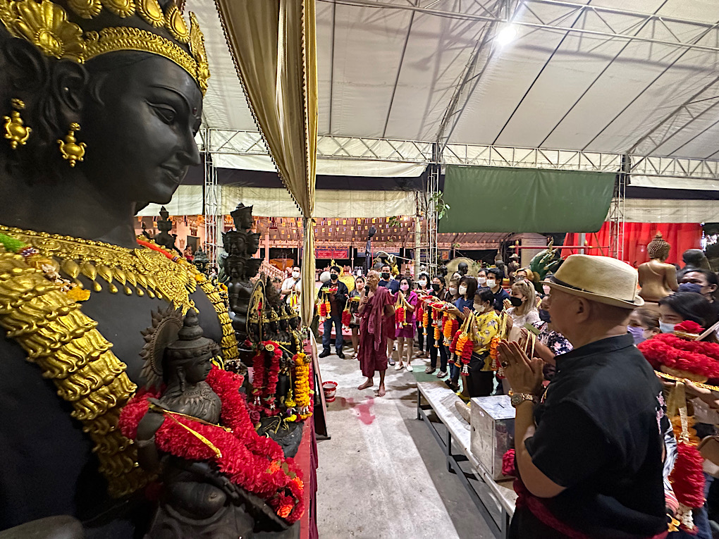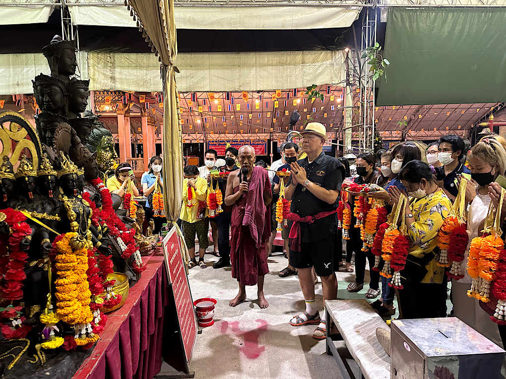 นครปฐม คนแห่ร่วมพิธีบวงสรวง พระตรีมูรติ ปาง 9 หน้าวัดหลวงพ่อป๊ะเกจิดัง