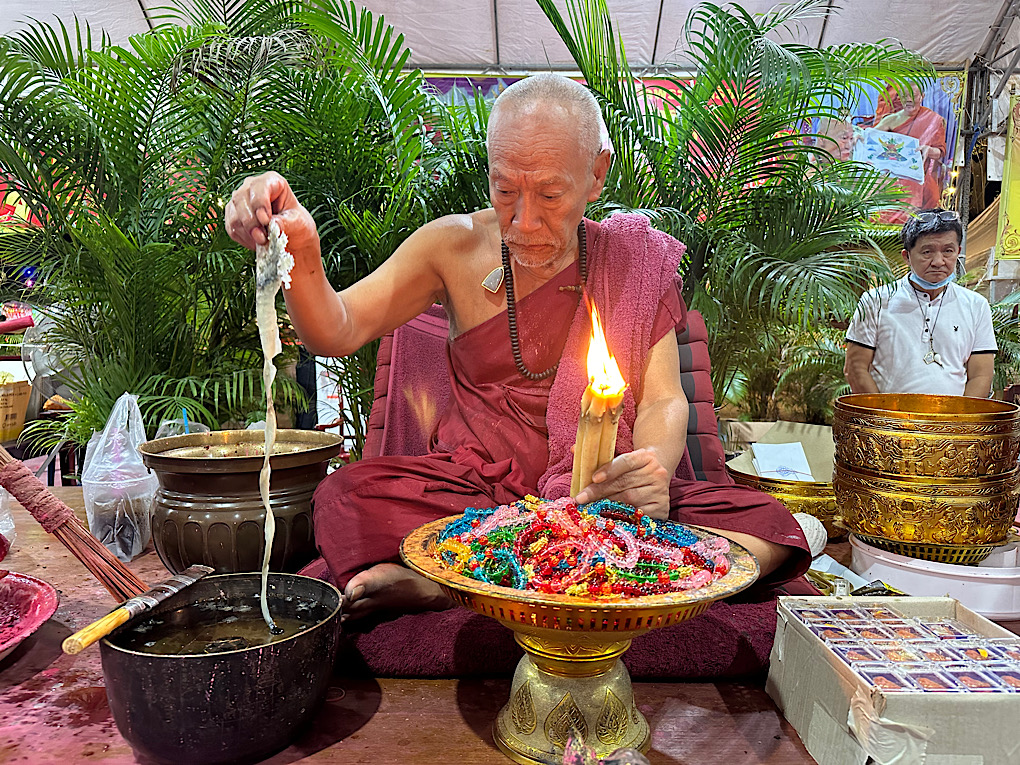 โดยมีสาธุชน ทั้งผู้สูงอายุ หรือหนุ่มสาว และคู่สามีภรรยาเข้าร่วมพิธี มีคู่รักกว่า 40 คู่เข้าร่วมในพิธี หลวงพ่อแป๊ะ สวดขอพรให้ใช้เวลากว่า 1 ช.ม. เมื่อเสร็จสิ้นพิธี สาธุชนได้รับเงินขวัญถุง เพื่อความเป็นสิริมงคล ก่อนที่จะเดินทางกลับ
