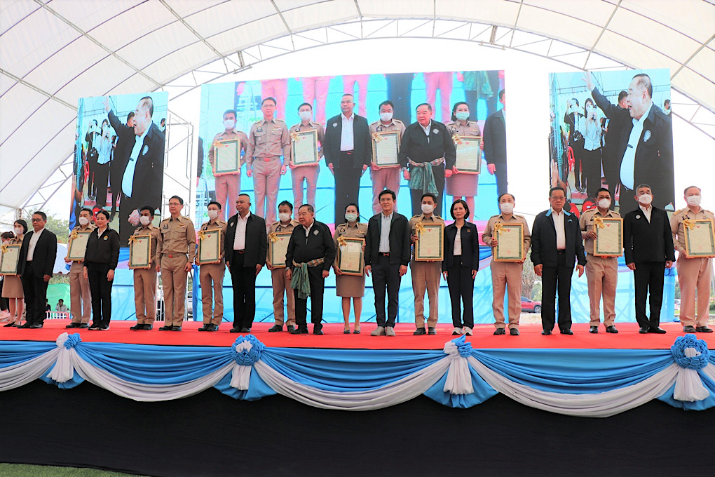 นายวุฒิพงศ์ เนียมหอม รองเลขาธิการสำนักงานการปฏิรูปที่ดินเพื่อเกษตรกรรม ได้รายงานการปฏิรูปที่ดินในพื้นที่จังหวัดกาญจนบุรี เริ่มมาตั้งแต่ปี 2520 ในพื้นที่ 12 อำเภอ ปัจจุบันได้ปฏิรูปที่ดินในพื้นที่ที่ได้รับการประกาศราชกฤษฎีกาแล้ว จำนวน 746,000 ไร่ ซึ่งได้ดำเนินการให้กับเกษตรกรเข้าทำประโยชน์แล้วจำนวน 46,206 ราย และจากนั้นวุฒิพงศ์ เนียมหอม รองเลขาธิการสำนักงานการสำนักงานการปฏิรูปที่ดินเพื่อเกษตรกรรม ได้เชิญพลเอกประวิตร วงษ์สุวรรณ รองนายกรัฐมนตรี มอบหนังสืออนุญาตให้เข้าทำประโยชน์ในเขตปฏิรูปที่ดิน (ส.ป.ก.4-01) โดยครั้งนี้ได้มอบเอกสารสิทธิ 2,131 ไร่ ให้กับนายอำเภอ 10 อำเภอ เพื่อส่งมอบให้กับเกษตรกรทั้งหมด 159 ราย