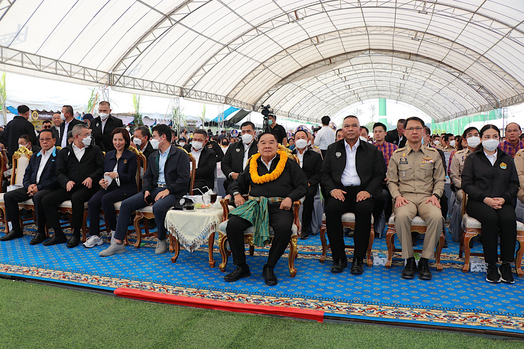 จากนั้นพลเอกประวิตร วงษ์สุวรรณ รองนายกรัฐมนตรี ได้กล่าวทักทายกับประชาชนที่เดินทางมาร่วมกิจกรรมในครั้งนี้ว่า มีความยินดีเป็นอย่างยิ่งที่ได้ลงพื้นที่จังหวัดกาญจนบุรี เพื่อมาพบกับพี่น้องชาวกาญจนบุรีและขอแสดงความยินดีกับผู้ที่ได้รับอนุญาตให้เข้าทำประโยชน์ในเขตปฏิรูปที่ดิน ซึ่งตนเองได้ให้ความสำคัญกับการแก้ปัญหาในที่ดินทำกินของประชาชน เพื่อความมั่นคงและการพัฒนาอาชีพเพื่อยกระดับคุณภาพชีวิตให้กับประชาชน วันนี้ตนเองและคณะได้ติดตามความคืบหน้าโครงการต่างๆโดยเฉพาะในการบริหารจัดการน้ำและเรื่องปัญหาที่ดินทำกินให้กับพี่น้องในจังหวัดกาญจนบุรี จากการรายงานจะเห็นได้ว่าจังหวัดกาญจนบุรีมีผลกระทบเรื่องขาดแคลนน้ำ ผมจึงได้กำชับผู้ที่เกี่ยวข้องให้เร่งดำเนินการเพื่อให้ประชาชนได้มีน้ำกินน้ำใช้อย่างทั่วถึง โดยให้กรมทรัพยากรน้ำ ติดตามและแก้ไขปัญหาให้กับประชาชนในพื้นที่ 5 อำเภอพร้อมกำกับดูแลปัญหาภัยแล้งในพื้นที่ และขอให้จังหวัดกาญจนบุรีเร่งรัดประสานบรูณาการต่อยอดขยายผลระบบส่งน้ำโครงการพัฒนาน้ำบาดาลให้ครอบคลุม ทั้ง 5 อำเภอที่ประสบปัญหาการขาดแคลนน้ำรวมทั้งให้เร่งรัดการแก้ไขปัญหาที่ดินทำกินให้ประชาชนในจังหวัดกาญจนบุรีจึงขอให้ผู้ว่าราชการจังหวัดติดตามและเสนอแนะให้ตนได้ช่วยแก้ปัญหาที่ติดขัดเพื่อแก้ไขปัญหาความเดือดร้อนให้ประชาชนเพราะรัฐบาลมีความจริงใจที่จะแก้ไขเรื่องคุณภาพชีวิตของประชาชน และขอความร่วมมือจากทุกท่านช่วยกันคิดและช่วยกันทำเพื่อพัฒนาประเทศให้มีความมั่นคง สุดท้ายผมขอให้หน่วยงานราชการทุกหน่วยมุ่งมั่นปฏิบัติหน้าที่เพื่อยกระดับความเป็นอยู่ที่ดีให้กับประชาชน