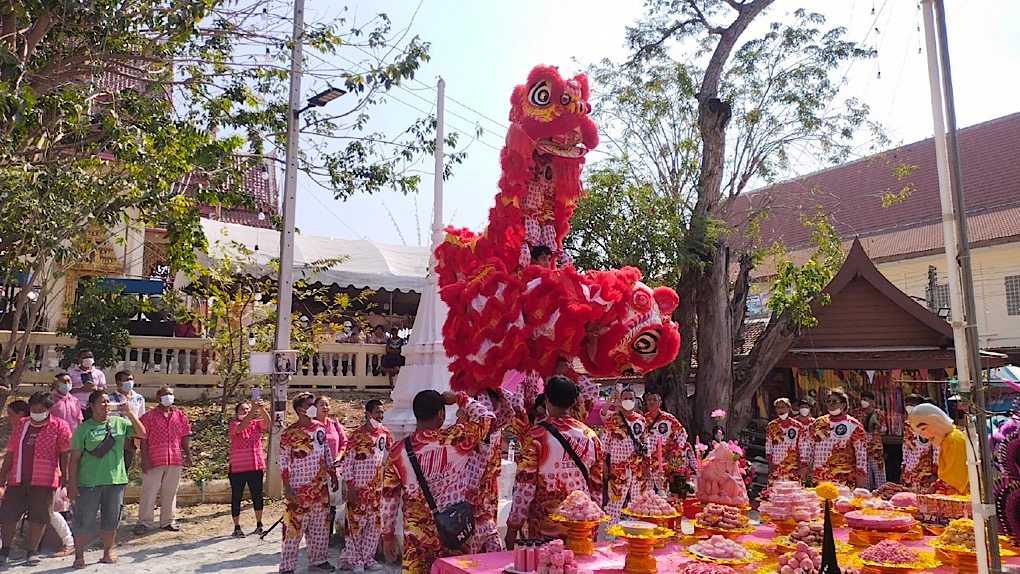 ซึ่งในปีนี้ได้เจ้าภาพที่มาขอพรหลวงพ่อสีชมพูแล้วโชคดี ได้จัดหาคณะสิงโต 8 สี เชื่อว่าเลข 8 เป็นมงคล มาแสดงถวาย