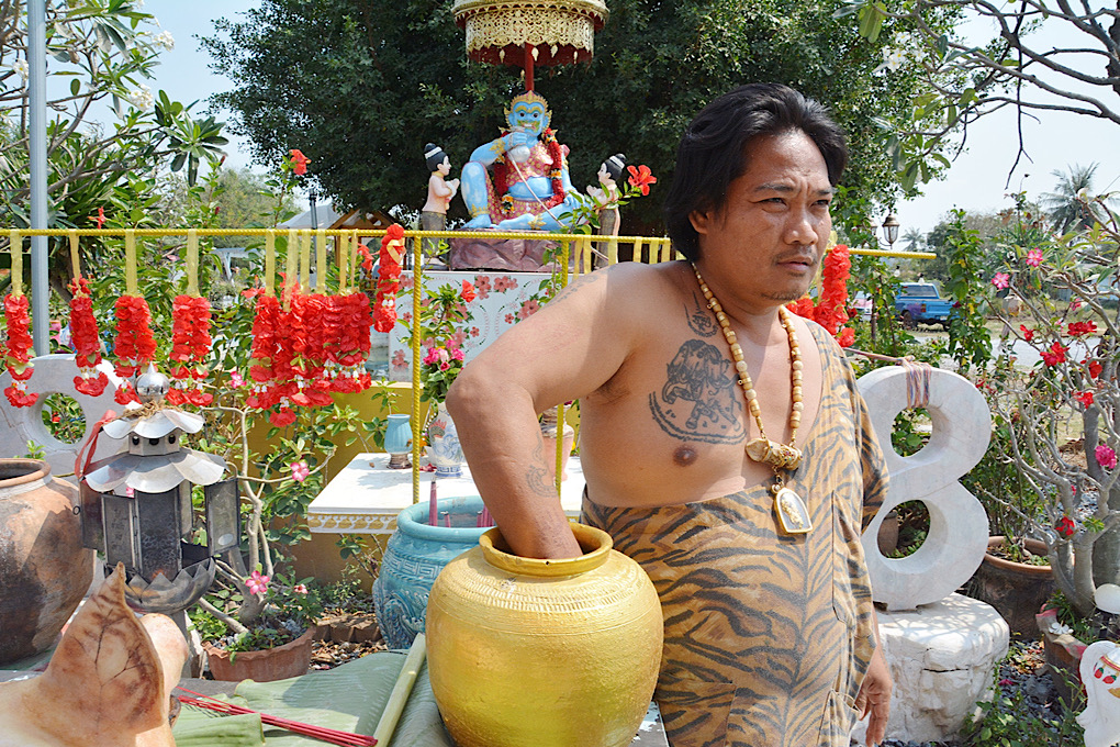 อาจารย์ฤาษีเกรียงไกร หรือนายอภิมุข กลิ่นจันทร์ อายุ 44 ปี เป็นเจ้าสำนักเปิดเผยว่าที่ผ่านมาได้มีนักเสี่ยงโชคทั้งชาวไทยและเวียด ได้เดินทางมาขอพร ขอโชคลาภแม่ผีเสื้อสมุทร และควายเผือก ชื่อ “น้องเทพสามตา” ซึ่งตรงตามตำรา “พญาควายเผือก” หลังจากมาขอพรแล้วก็โชคดีรับทรัพย์ต่อเนื่องกันไปหลายราย มีคนมาดู “น้องเทพสามตา” ควายเปือกตัวนี้ และขอซื้อให้ราคาสูงถึง 1 ล้านบาท แต่ตนไม่ขาย เพราะตั้งแต่ได้ควายเผือกมามีลูกค้าสั่งของวัตถุมงคลกันอย่างไม่ขาดสายและมีลูกศิษย์นักแสวงโชคมาขอโชคลาภกันแบบไม่ขาดสาย