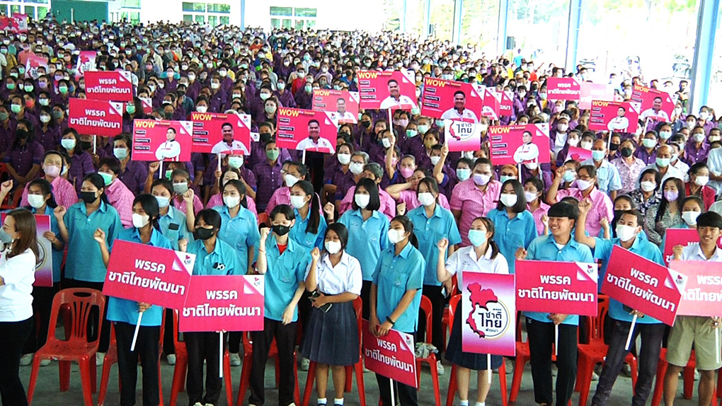 ที่ อ.อู่ทอง จ. สุพรรณบุรี วันที่ 17 ก.พ.2566 นายวราวุธ ศิลปอาชา หัวหน้าพรรคชาติไทยพัฒนา (ชทพ.) คุณหญิงแจ่มใส ศิลปอาชา วัย 89 ปี น.ส.กัญจนา ศิลปอาชา ประธานที่ปรึกษาพรรคชาติไทยพัฒนา นายประภัตร โพธสุธน เลขาธิการพรรคชาติไทยพัฒนา เปิดเวทีปราศรัย บริเวณลานเอนกประสงค์บ้าน นายนพดล มาตรศรี ส.ส.พรรคชาติไทยพัฒนา จ.สุพรรณบุรี เพื่อช่วยนายนพดล ว่าที่ผู้สมัคร สส.แบบเขต หาเสียง ในเขตเลือกตั้งที่ถูกแบ่งเขตเลือกตั้งใหม่ ในพื้นที่ อู่ทอง และ สองพี่น้อง โดยก่อนการปราศรัยได้เดินทักทายประชาชน และนักเรียนที่มาร่วมฟังปราศรัย อย่างเป็นกันเอง ทั้งกอด รับมอบดอกกุหลาบ พร้อมถ่ายภาพเซลฟี่กับทุกคน