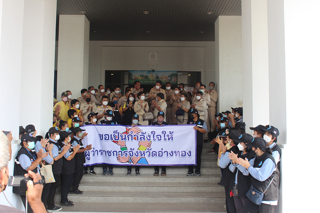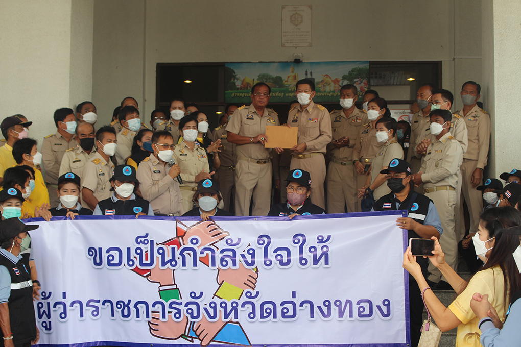 นายกเทศมนตรีเมืองอ่างทอง พร้อมด้วยผู้นำ อปท. กว่า 60 แห่ง ร่วมกับกำนัน ผู้ใหญ่บ้าน อสม. และประชาชน ให้กำลัง ผวจ.อ่างทอง หลังตกเป็นข่าวนายก อบต.แห่งหนึ่ง แจ้งความดำเนินคดีเอาผิดผู้ว่าฯ