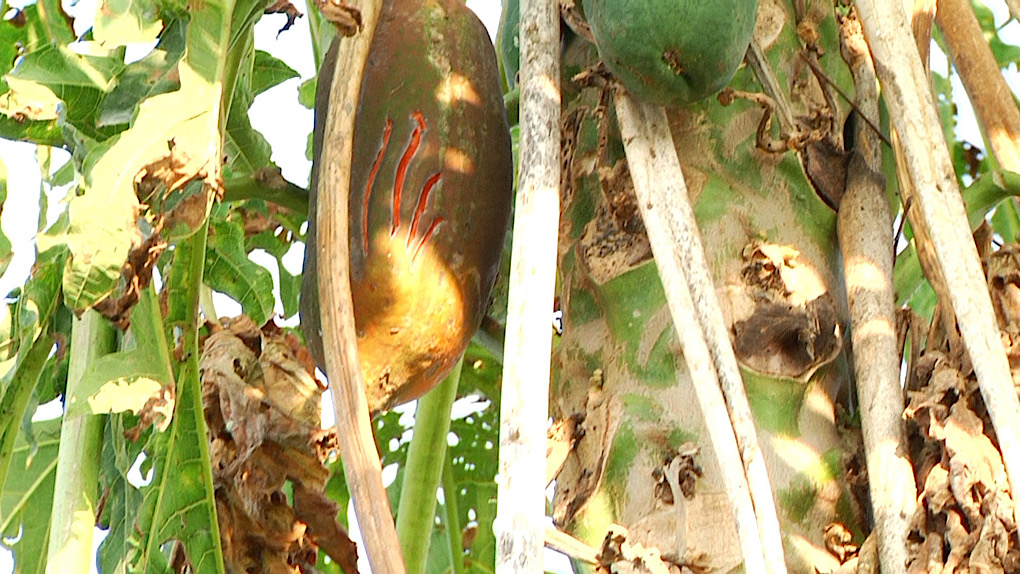 และที่ต้นมะละกอข้างบ้านก็มีรอยเลือด รอยตะปบ รอยเล็บติดอยู่ที่ต้นเต็มไปหมด และแมวที่เลี้ยงไว้มี 5 ตัวตอนนี้เห็นอยู่ตัวเดียว ก็ไม่รู้ว่าเป็นเลือดแมวหรือเลือดหมี เมื่อเช้าเรียกแมวมากินอาหารมี 5 ตัว แต่มาตัวเดียว ตอนเรียกมาเจ้าเหมียวทำท่าหันซ้ายหันขวาเหมือนตกใจหวาดกลัวอะไรบางอย่าง อาหารก็ไม่กิน ที่บ้านหลังนี้เจ้าของจะมาอยู่กันวันเสาร์-อาทิตย์ เบื้องต้นมั่นใจว่าเป็นหมี ตอนนี้อยากให้หน่วยงานออกมาช่วยเหลือเพราะมันอันตรายกลางคืนไม่กล้าออกมาที่นา ตอนนี้ชาวบ้านพากันหวาดกลัวและแถวนี้ก็มีเด็กเยอะด้วยกลัวจะเกิดอันตราย