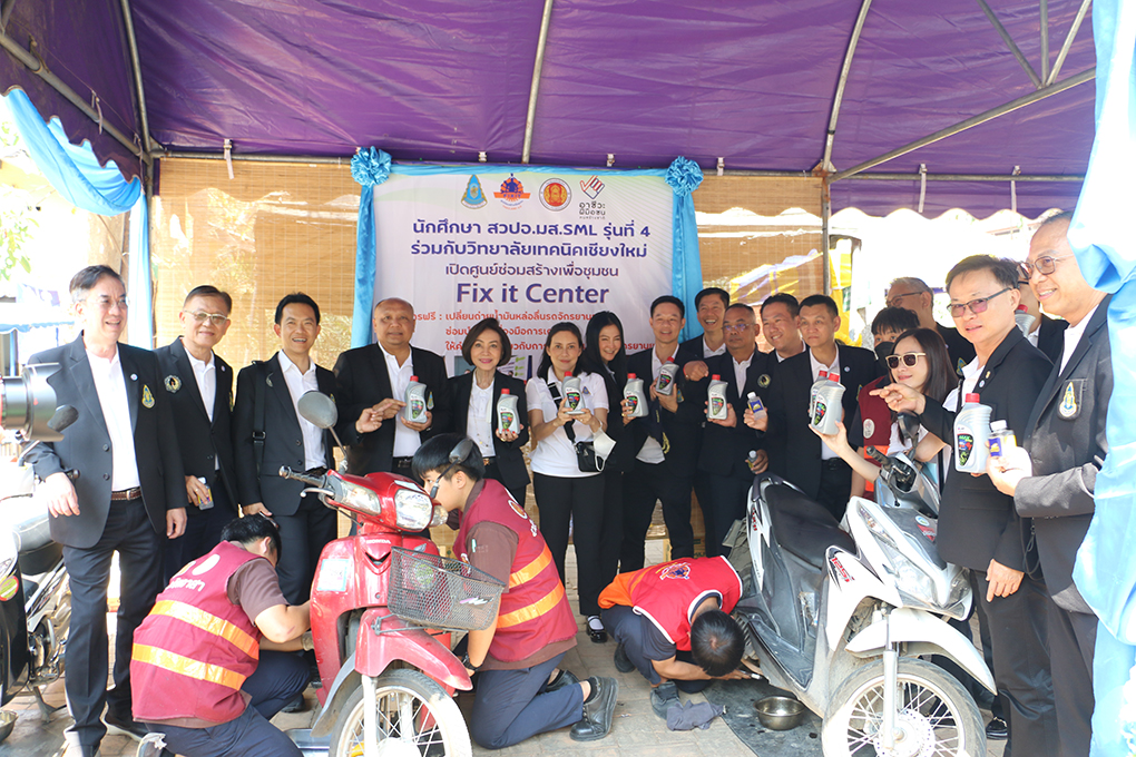 เพื่อชุมชน (Fix It Center) ซึ่งมีวัตถุประสงค์เพื่อซ่อมบำรุงรถจักรยานยนต์ และเครื่องจักรกลการเกษตร รวมถึงให้คำแนะนำปรึกษา ตลอดจนการบริการสร้างอาชีพหรือต่อยอดอาชีพ ด้วยการนำนวัตกรรมหรือเทคโนโลยีมาพัฒนาชุมชนเพื่อลดค่าใช้จ่ายให้กับพี่น้องประชาชน อีกทั้งเพื่อให้นักศึกษาแผนกวิชาช่างยนต์ วิทยาลัยเทคนิคเชียงใหม่ ได้ฝึกปฏิบัติงานจริงตามสาขางาน โดยในการนี้ได้รับเกียรติจาก นายวัชรพงศ์ ฝั้นติ๊บ ผู้อำนวยการวิทยาลัยเทคนิคเชียงใหม่ ประธานกรรมการอาชีวศึกษาจังหวัดเชียงใหม่ ให้การต้อนรับ