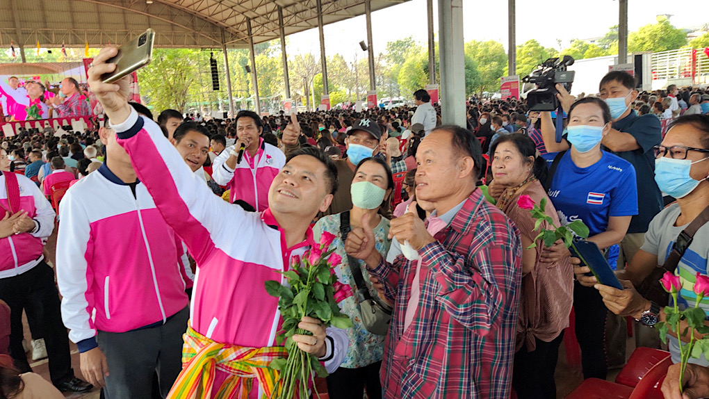 บิ๊กท็อป วราวุธ ควงคุณหญิงแจ่มใส กัญจนา ประภัตร พร้อมผู้บริหารพรรคชาติไทยพัฒนา จัดปราศรัย พื้นที่อำเภอด่านช้าง ฐานเสียงตระกูลเที่ยงธรรม กัญจนา เดือดซัดพรรคใหม่บางพรรค ที่มีอำนาจมาแจกที่ดิน เขาคงเห็นเราเป็นพรรคเล็ก เห็นเราเล็ก ที่อื่นเราอาจไม่ใหญ่ แต่ที่สุพรรณ ชาติไทยพัฒนาเราใหญ่