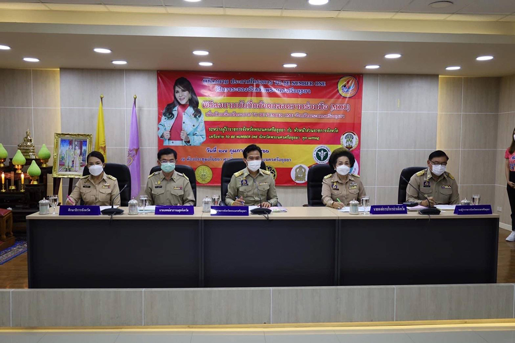 โดยมีนายนิวัฒน์ รุ่งสาคร ผู้ว่าราชการจังหวัดพระนครศรีอยุธยา เป็นประธานในพิธี พร้อมด้วย นายแพทย์ยุทธนา วรรณโพธิ์กลาง นายแพทย์สาธารณสุขจังหวัดพระนครศรีอยุธยา หัวหน้าส่วนราชการที่เกี่ยวข้อง นายอำเภอทั้ง 16 อำเภอ เข้าร่วมลงนาม MOU ณ ห้องประชุมอโยธยา ชั้น 3 อาคาร 4 ชั้น ศูนย์ราชการจังหวัดพระนครศรีอยุธยา