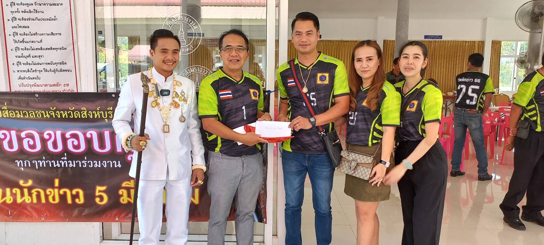 วันที่ 5 มีนาคม2566 นายสุพจน์ ยศสิงห์คำ ผู้ว่าราชการจังหวัดสิงห์บุรี/นายกเหล่ากาชาดจังหวัดสิงห์บุรี มอบหมายให้ นายสัมฤทธิ์ กองเงิน รองผู้ว่าราชการจังหวัดสิงห์บุรี ร่วมกิจกรรมการแข่งขันกีฬาสากลและกีฬาพื้นบ้าน เนื่องในงาน “วันนักข่าว” ประจำปี ๒๕๖๖ ณ สนามกีฬาองค์การบริหารส่วนจังหวัดสิงห์บุรี จัดโดย นายสมควร ชัยบุรินทร์ นายกสมาคมสื่อมวลชนสิงห์บุรี โดยมี นางจิราภรณ์ กองเงิน รองนายกเหล่ากาชาดจังหวัดสิงห์บุรี นางภรณี ธนาคมานุสรณ์ กรรมการเหล่ากาชาดจังหวัดสิงห์บุรี นายณรงค์ศักดิ์ วิงวอน นายกเทศมนตรีเมืองสิงห์บุรี นางสาววิภารัตน์ บัญญัติ ผู้อำนวยการการกีฬาแห่งประเทศไทยจังหวัดสิงห์บุรี