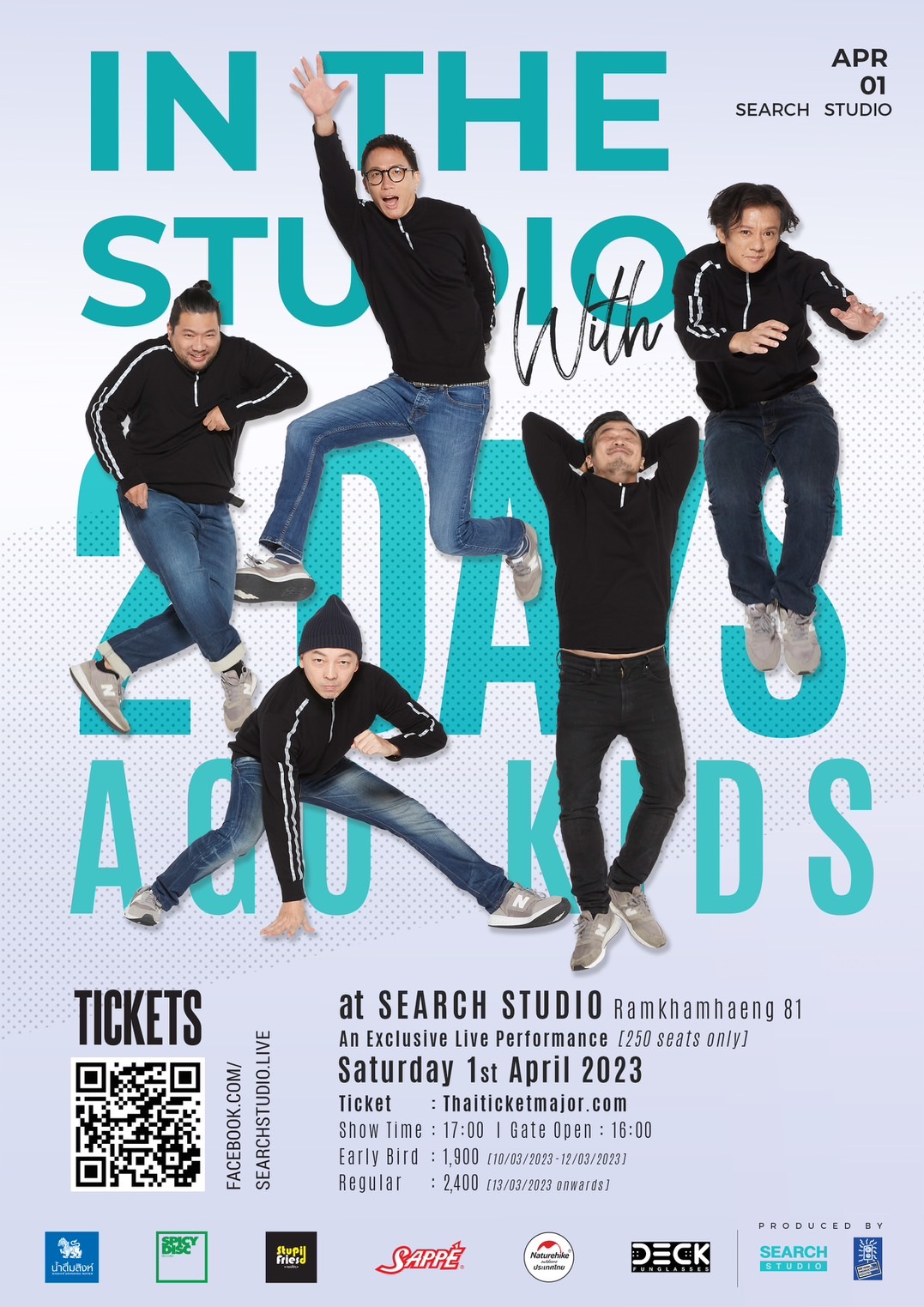 2 Days Ago Kids (ทูเดย์ส อะโกคิดส์) กลุ่มศิลปินระดับปรมาจารย์ของวงการเพลง เจ้าของเพลงฮิตระดับตำนานอย่าง “ฉันไม่รู้จะรักเธอนานเท่าไร” และ “กลับมา” เตรียมขนเพลงฮิตมาร้องกันในรูปแบบ Live House ในคอนเสิร์ต In The Studio With 2 Days Ago Kids วันเสาร์ที่ 1 เมษายน 2566 ณ SEARCH STUDIO รามคำแหง 81 เวลา 17:00 น. เป็นต้นไป