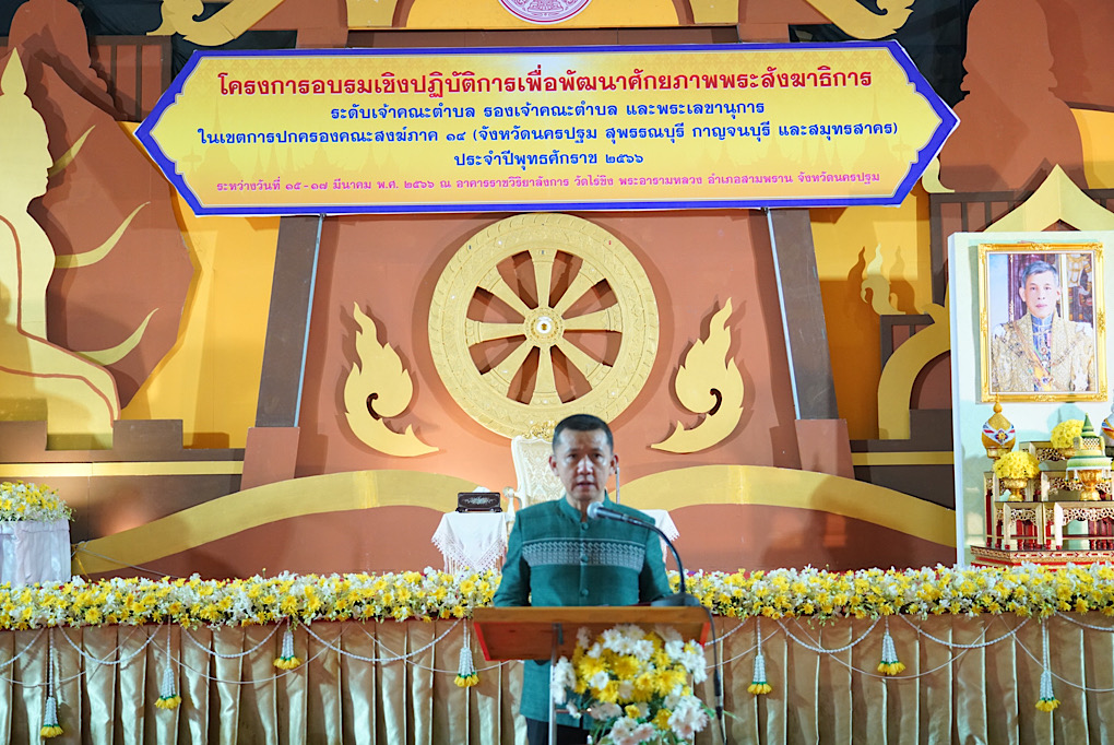นครปฐม รองผู้ว่าฯถวายการต้อนรับและบรรยายพิเศษโครงการอบรมเชิงปฏิบัติการเพื่อพัฒนาศักยภาพพระสังฆาธิการ ระดับเจ้าคณะตำบล และเลขานุการเจ้าคณะตำบล ในเขตปกครองคณะสงฆ์ภาค 14 ประจำปี 2566