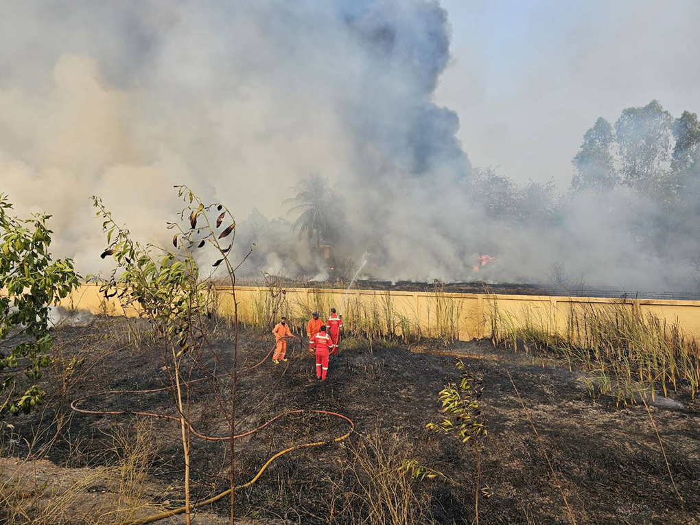 โรงไฟฟ้าวังน้อย ร่วมกับ อบต.ชะแมบ อบต.วังจุฬา และอบต.ข้าวงาม ร่วมระงับเหตุเพลิงไหม้วัชพืช ที่ลุกลามไปติดบริเวณบ้านที่อยู่อาศัย