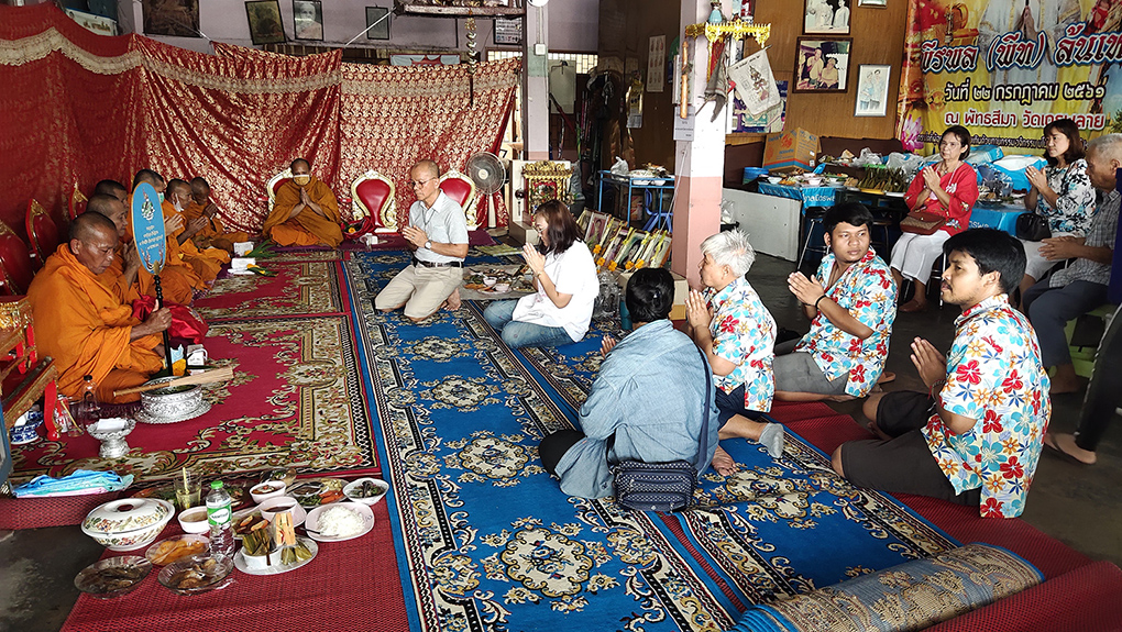 นางรัชนีกร พิมพ์วงษ์ อายุ 52 ปี เจ้าของร้านกล่าวว่าวันนี้ที่ร้านได้มีพิธีทำบุญอุทิศส่วนกุศลให้กับพ่อ แม่ ซึ่งเป็นเจ้าของสูตรข้าวหมูแดงรสเด็ดและได้มอบให้ตนประกอบอาชีพเรื่อยมา ซึ่งท่านทั้งสองได้เสียชีวิต วันที่ 19 มีนาคม 2541 ดังนั้นวันนี้ทางร้านจึงได้จัดพิธีทำบุญเพื่อเป็นการทำบุญให้พ่อ และแม่ รวมทั้งบรรพบุรุษ และญาติพี่น้องที่เสียชีวิต จึงกำหนดวันทำบุญใหญ่ ทุกวันที่ 19 มี.ค.ของทุกปี ตนและครอบครัวเริ่มแจกข้าวหมูแดง ให้กับชาวบ้านกินฟรีมาตั้งแต่ปี พ.ศ.2560 เรื่อยมาจนถึงปัจจุบันเป็นปีที่ 6 แล้ว