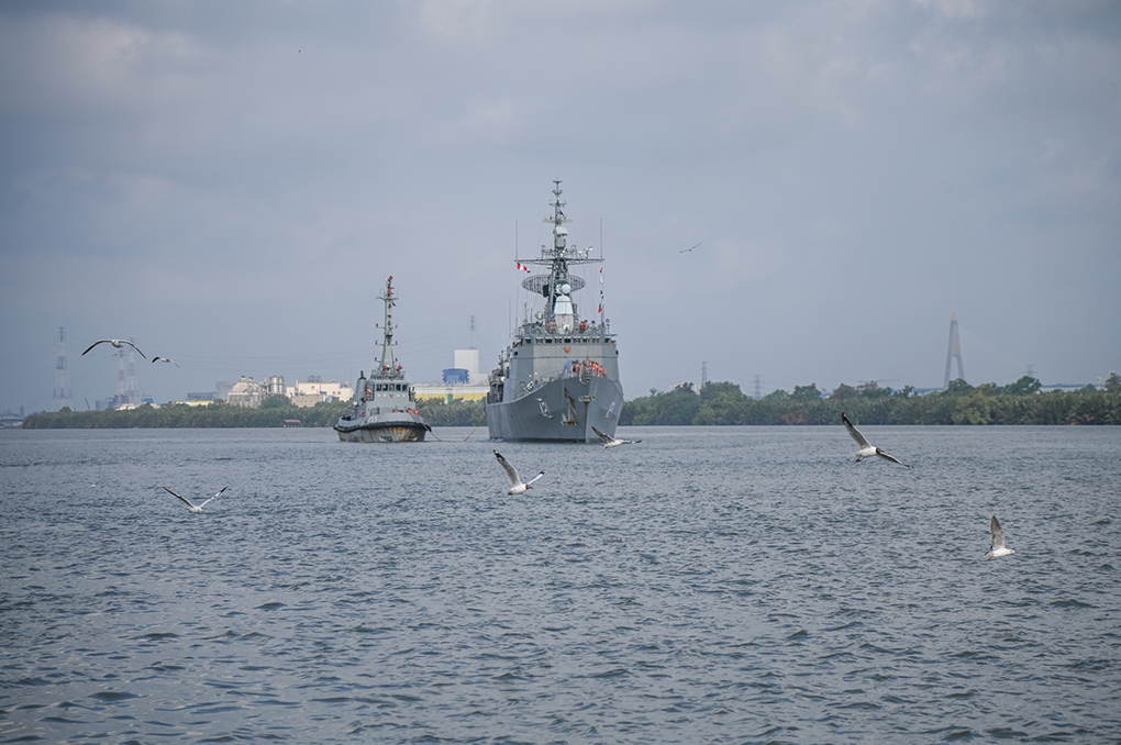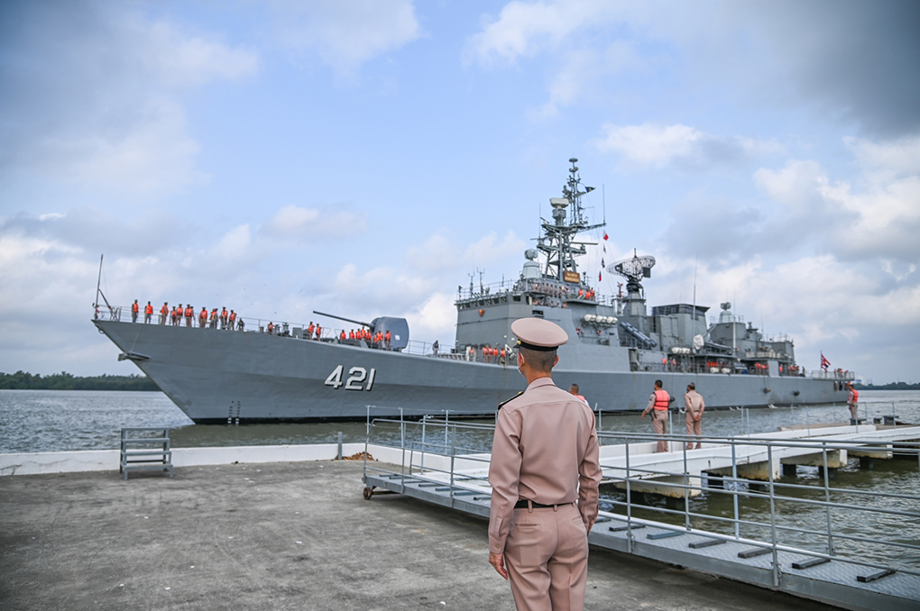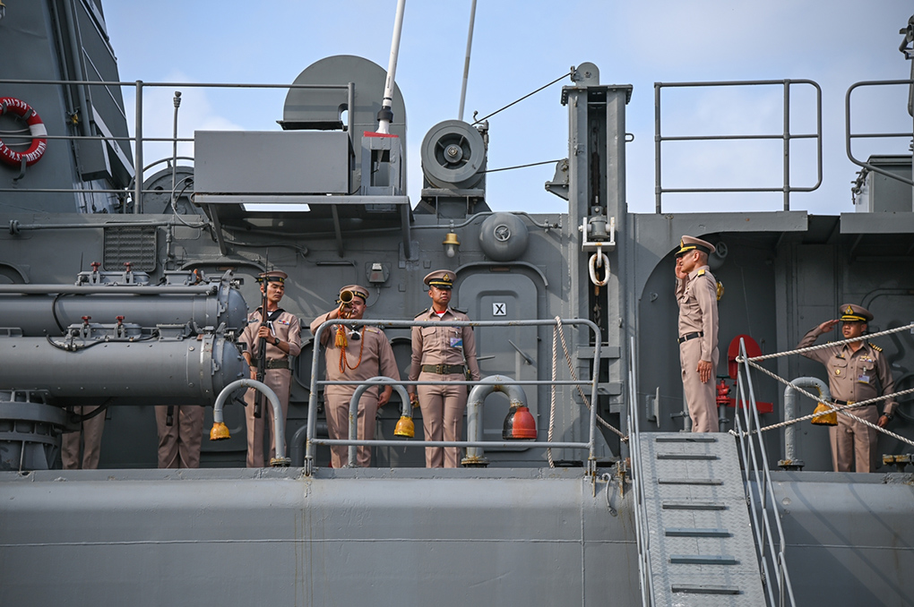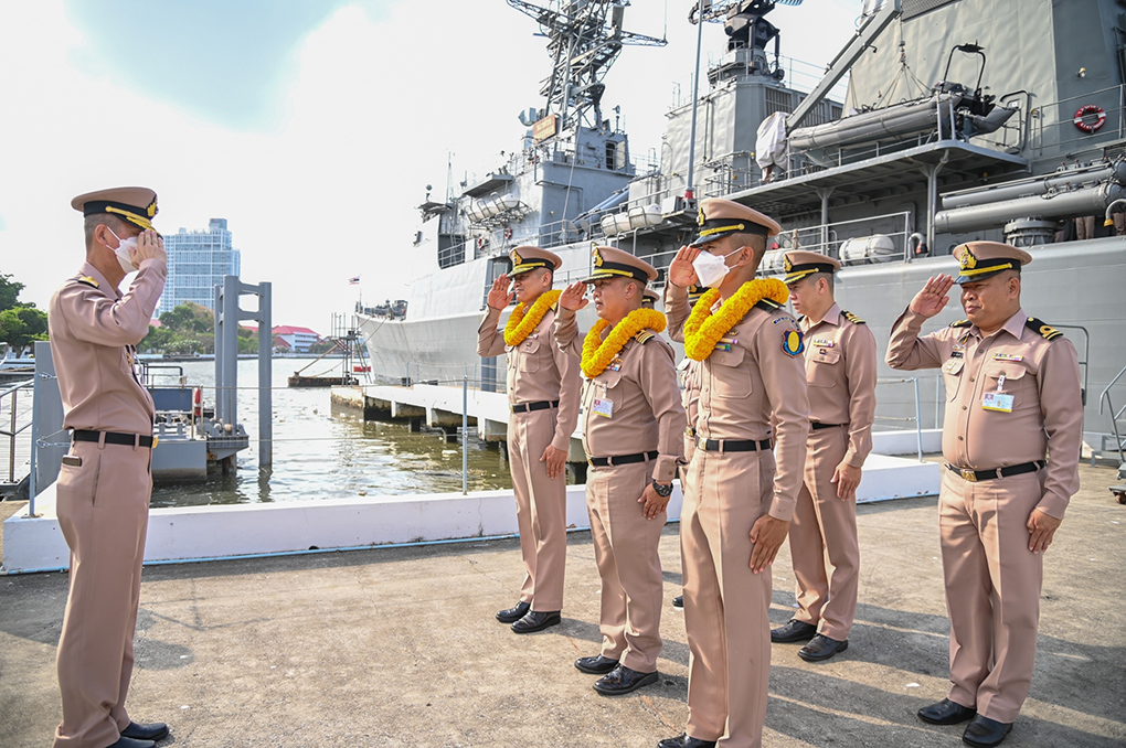 สมุทรปราการ โรงเรียนนายเรือจัดพิธีต้อนรับหมู่เรือฝึกนักเรียนนายเรือในการฝึกภาคปฏิบัติในทะเลต่างประเทศประจำปีการศึกษา 2565 เดินทางกลับ