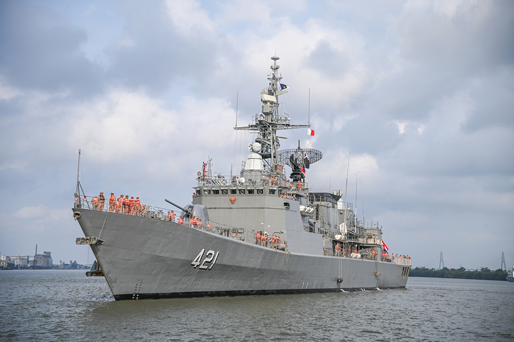 สำหรับหมู่เรือฝึกนักเรียนนายเรือ ประกอบด้วย เรือหลวงนเรศวร เรือหลวงบางปะกง และเรือหลวงปัตตานี ทำการฝึกภาคปฏิบัติในทะเลต่างประเทศให้แก่นักเรียนนายเรือชั้นปีที่ 1 – 4 ประจำปีการศึกษา 2565 โดยมีพลเรือตรี ปรีดิวัฒน์ ดิลกนรนารถ รองผู้บัญชาการโรงเรียนนายเรือเป็นผู้บังคับหมู่เรือฝึกนักเรียนนายเรือ ซึ่งทำการฝึกภาคทะเลระหว่างวันที่ 22 กุมภาพันธ์ 2566 – 19 มีนาคม 2565 รวม 26 วัน ระยะทาง 3,175 ไมล์ก่อนหน้านั้น ได้เดินถึงท่าเรือแหลมเทียน การท่าเรือสัตหีบฐานทัพเรือสัตหีบ อำเภอสัตหีบ จังหวัดชลบุรี เพื่อรับการตรวจภาคจากคณะตรวจ กรมจเรทหารเรือ โดยมีกาารตรวจภาคเรือจอด และตรวจภาคเรือเดิน