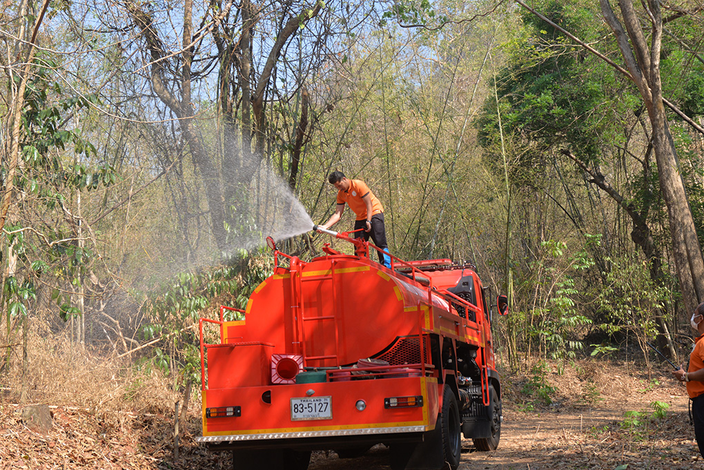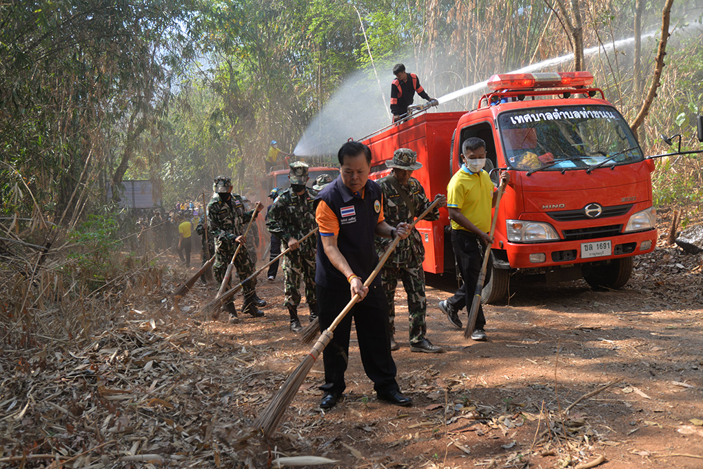 นายชาคริต ตันพิรุฬห์ นายอำเภอทองผาภูมิ ร่วมกับ เขื่อนวชิราลงกรณ องค์กรปกครองส่วนท้องถิ่น ป้องกันและบรรเทาสาธารณาภัย กรมอุทยานแห่งชาติ หน่วยพัฒนาการเคลื่อนที่ 11 ตชด.135 กำนัน ผู้ใหญ่บ้าน มูลนิธิกู้ภัยกาญจนบุรี และมูลนิธิพิทักษ์กาญจน์ ภาคเอกชนจัดกิจกรรมและร่วมปล่อยขบวนรถฉีดพ่นละอองน้ำ รณรงค์ป้องกันและแก้ไขปัญหา หมอกควัน ไฟป่า และฝุ่นละอองขนาดเล็ก PM.2.5