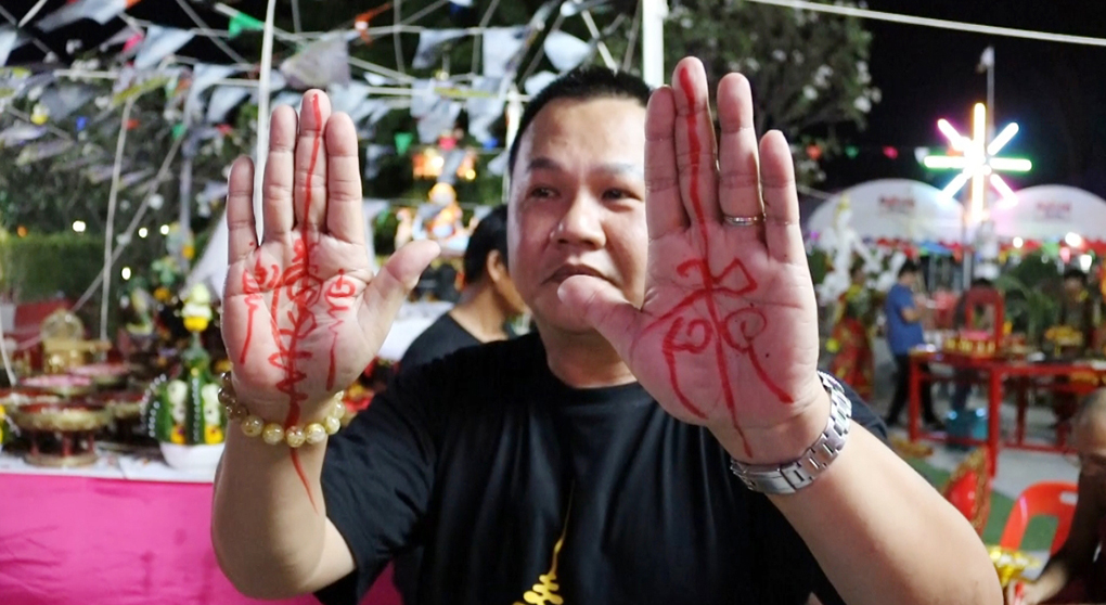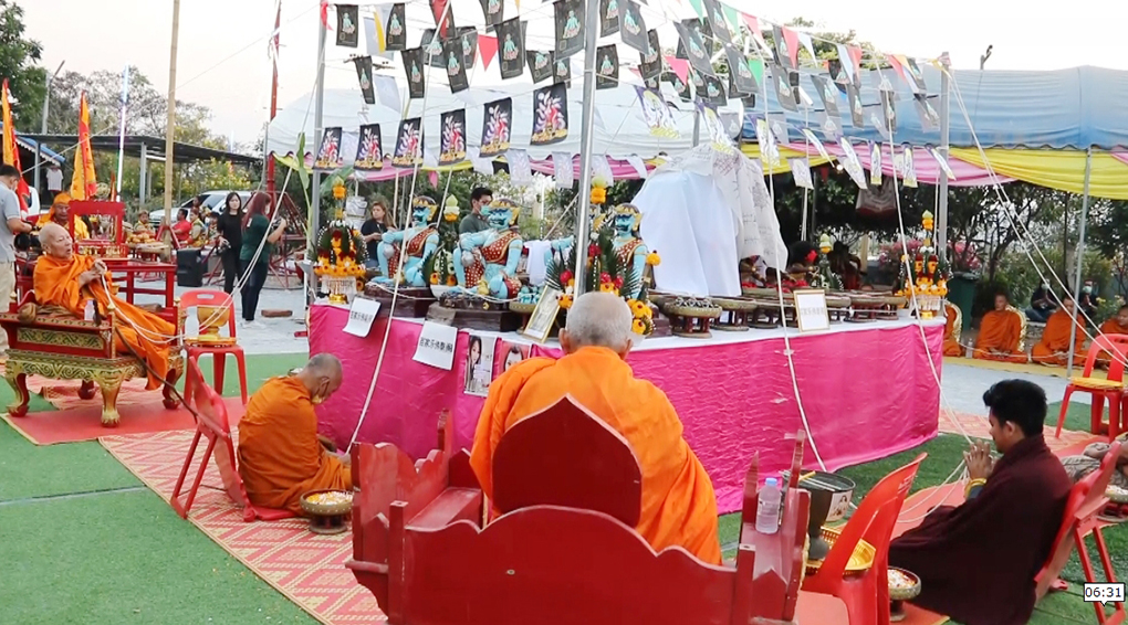 จากนั้นช่วงเย็นมีพิธี เทวาภิเษก วัตถุมงคล หุงสีผึ้ง โดยมีครูบาหลวงปู่คำเป็ง หลวงปู่ดุสิต วัดไผ่แขก และ อาจารย์ สายฆราวาส ร่างทรงเจ้าพ่อเสือ มาประทับร่าง แสดงปาฏิหาริย์ อมเทียน และ ใช้มีปาดลิ้น นำเลือดมาเขียนยันต์ และ ร่วมอธิษฐานจิตปลุกเสกเครื่องรางของขลัง หลังเสร็จพิธี ผู้ที่มาร่วมงานต่างเข้าคิวให้หลวงปู่ดุสิต ลงนะดวงดีมหาเศรษฐี ที่ฝ่ามือหลังจากมียันต์แล้วยังปรากฏเลขไทย เป็นเลข 7-8-6 นำไปเสี่ยงดวงงวดนี้อีก