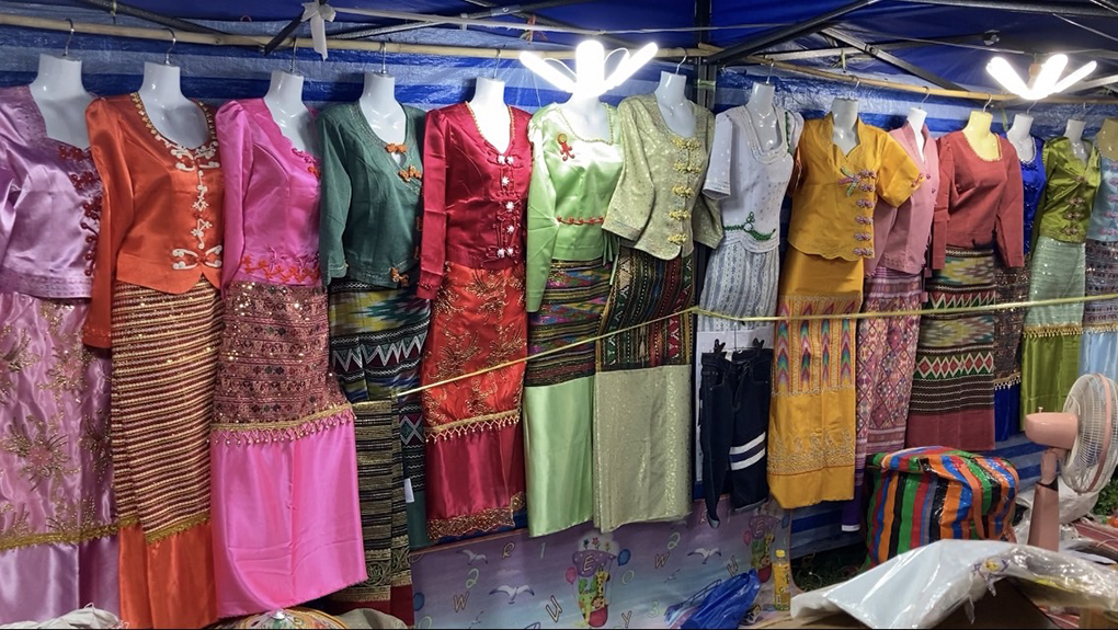 แต่ก็ยังมีพ่อค้าแม่ค้าหัวใสจัดหามาจากสิบสองปันนาประเทศจีน และเชียงตุงประเทศเมียนมา มาขายในงานบวชส่างลองเลยในราคาก็พอสมควร ยังมีลูกหลานไทยใหญ่ที่เรียนจากพ่อแม่รับสั่งตัดใส่กันอยู่ บวชส่างลองปีนี้มีส่างลองในพื้นที่และนอกพื้นที่เข้ามาร่วมในการบวชจำนวนมากกว่า40 องค์ และนำเงินสมทบสร้างพระธาตุองค์ละ10,000 บาท และจะต้องบวชศึกษาเล่าเรียนหลักคำสอนพระพุทธเจ้า 1 เดือนเศษ จนกว่าโรงเรียนเปิดเรียนจึงจะสึกออกมาเพื่อให้บุตรหลานได้มีจิตใจไผธรรมมะ และออกสู่สังคมโลกเป็นพลเมืองที่ดีมีคุณภาพต่อไปหวังพึ่งธรรมะเพื่อชีวิตที่ดีกว่า ทางล้านนานั้นถือว่าส่างลองนั้นยังเป็นเด็กบริสุทธิผ่องใสไร้มลทินไดได ตั้งแต่โกนหัวแล้วจะไม่ให้ส่างลองเท้าแตะพื้นดินเลยจนบวชเป็นสามเณรแล้วถึงจะแตะได้ยังความสะอาดบริสุทธิเพื่อบวชจะเป็นบุญของพ่อแม่ญาติพี่น้องจะมีคนคอยดูแลตลอดเวลาและจะมีการแต่งองค์ทรงเครื่องกันเต็มที่มีทองมีเพชรก็จะประดับกันเต็มที่ตามฐานตามประเพณีนิยมของชนชาวไทยใหญ่ที่สืบสานกันมานบนาน ซึ่งงานเริ่มตั้งแต่วันที่28 มีนาคม ถึงวันที่ 31 มีนาคม 2566 วันนี้ก็จะบวชเป็นสามเณรในช่วงบ่ายเสร็จพิธี
