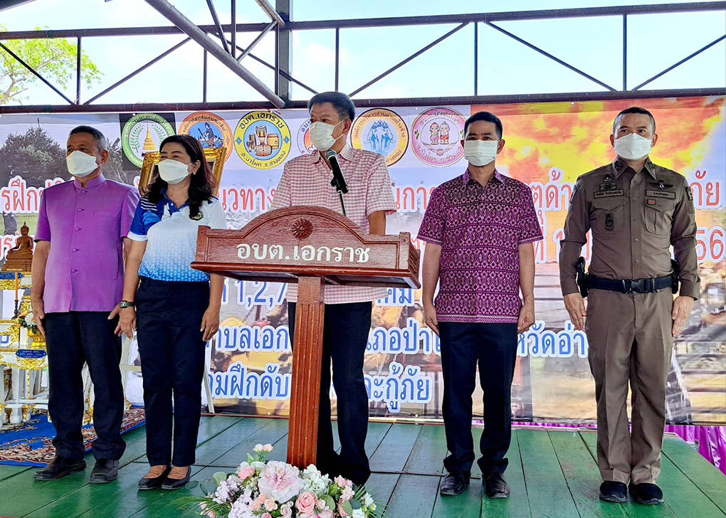 อำเภอป่าโมก จ.อ่างทอง เปิดโครงการฝึกอบรมอาสาสมัครป้องกันภัยฝ่ายพลเรือน หลักสูตรจัดตั้ง รุ่นที่ 1 เพื่อพัฒนาศักยภาพเครือข่าย อปพร.ด้านการป้องกันและบรรเทาสาธารณภัย และช่วยเหลือผู้ประสบภัยในพื้นที่