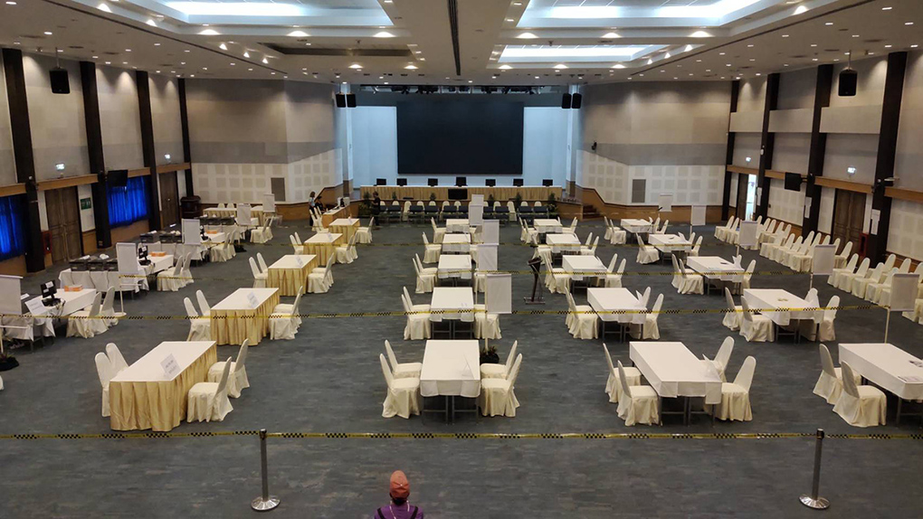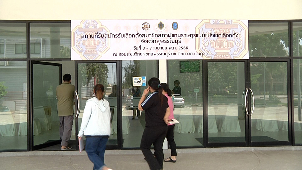 ที่หอประชุมมหาวิทยาลัยสวนดุสิตวิทยาเขตสุพรรณบุรี อำเภอเมืองสุพรรณบุรี ซึ่งเป็นสถานที่รับสมัคร รับเลือกตั้งสมาชิกสภาผู้แทนราษฎร แบบแบ่งเขตเลือกตั้งจังหวัดสุพรรณบุรี เจ้าหน้าที่สำนักงานการเลือกตั้งประจำจังหวัดสุพรรณบุรี ร่วมกับคณะผู้บริหาร อาจารย์ และเจ้าหน้าที่ของมหาวิทยาลัยสวนดุสิต ได้ช่วยกันจัดเตรียมความพร้อมสถานที่รับสมัคร