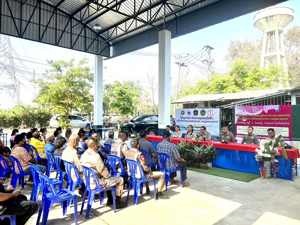 วันนี้ (3 เม.ย. 2566) เวลา 09.00 น. พ.ต.อ.วินิจฉัย พินิจศักดิ์ ผกก.สภ.สารภี , พ.ต.ท.จิตดนัย รัตนไพบูลย์เจริญ รอง ผกก.ป.ฯ , พ.ต.ท.สุชาติ หอมนาน สวป.สภ.สารภี พร้อมชุดปฎิบัติการชุมชนยั่งยืน สภ.สารภี พร้อมด้วยผู้แทนภาคีเครือข่าย ,นางสุภาภรณ์ รัตนโพธิ์ ผอ.รพ.สต.ชมภู , นางดารุณี แก้วโธา รองปลัดนายกเทศบาลตำบลชมภู , ผู้ใหญ่บ้านบ้านร่มป่าตอง ผู้นำชุมชน และ ประชาชนบ้านร่มป่าตอง ม.9 อ.สารภี จ.เชียงใหม่ ได้ร่วมประชุมและ ทำพิธีเปิดโครงการดำเนินงานชุมชนยั่งยืน เพื่อแก้ไขปัญหายาเสพติดแบบครบวงจรตามยุทธศาสตร์ชาติ ประจำปี 2566 และ ได้ร่วมลงนามบันทึกข้อตกลงว่าด้วยความร่วมมือ (MOU) การดำเนินการตามโครงการชุมชนยั่งยืนฯเพื่อ สร้างชุมชนเข้มแข็ง แก้ไขปัญหายาเสพติดอย่างครบวงจร แบบบูรณาการอย่างยั่งยืน
