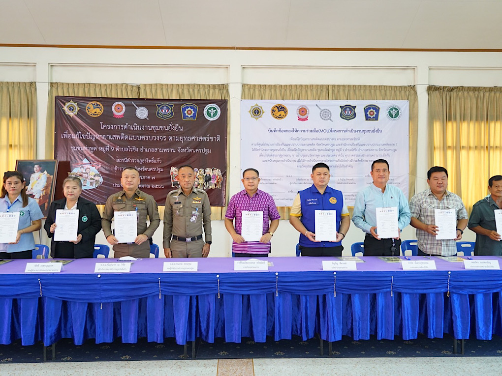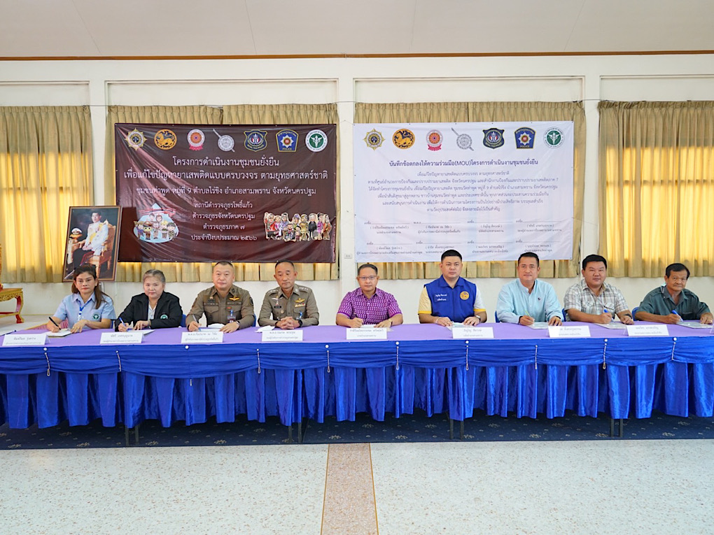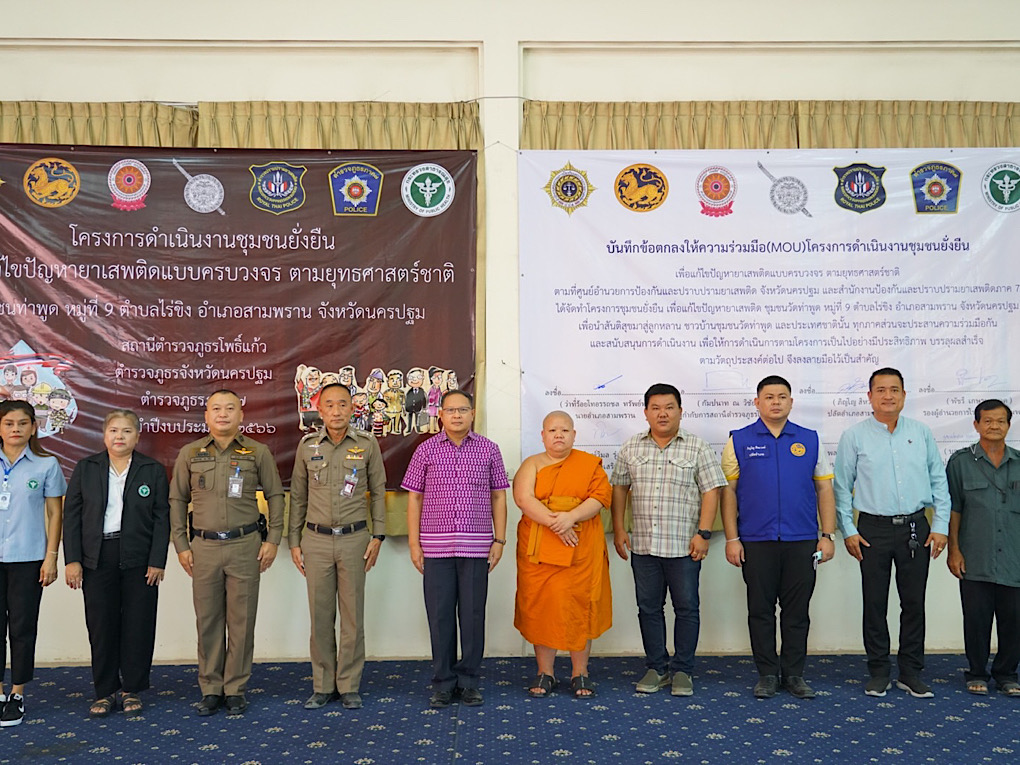 นครปฐม อำเภอสามพรานร่วมกับสภ.โพธิ์แก้ว บูรณาการเปิดโครงการดำเนินงานชุมชนยั่งยืน เพื่อแก้ไขปัญหายาเสพติดแบบครบวงจร