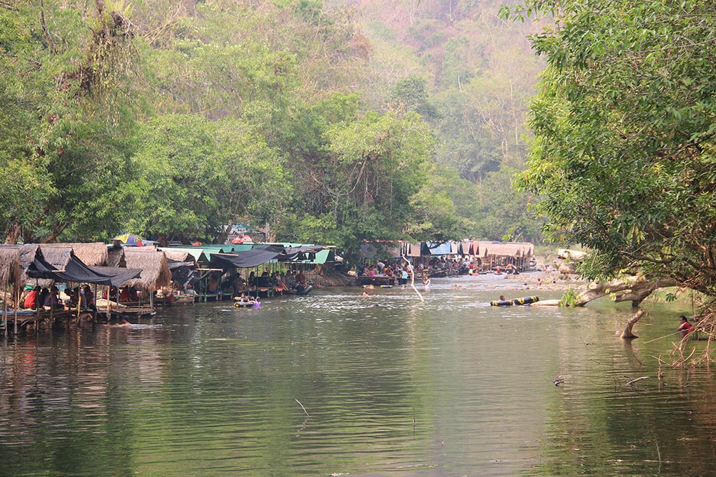 กาญจนบุรี ประชาชนและนักท่องเที่ยวแห่พักผ่อน เล่นน้ำคลายร้อน บริเวณจุดเล่นน้ำซองกาเลีย ส่งผลดีต่อเศรษฐกิจในพื้นที่ คาดสงกรานต์นักท่องเที่ยวทะลักแน่นอน