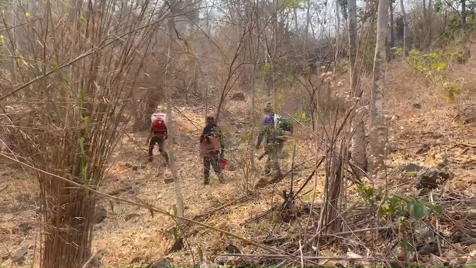 ที่จังหวัดสุพรรณบุรี วันที่ 10 เมษายน 2566 นายเฉลย เพียรทอง นายมงคล เพ็งคล้าย กรรมการป่าชุมชนบ้านลูกแก หมู่ 10 ตำบลพลับพลาไชย อำเภออู่ทอง จังหวัดสุพรรณบุรี พร้อมกรรมการป่าชุมชน และชาวบ้านลูกแก เกือบ 10 คนเดินเท้า แบกอุปกรณ์การดับไฟ มีทั้งแกลอนใส่น้ำ ไม้ตบ เครื่องเป่าลม ขึ้นไปช่วยกันดับไฟที่กำลังลุกไหม้ป่าชุมชนบนเขาบ้องกัญชา บ้านลูกแกหลังเกิดไฟไหม้ 3 วันติดต่อกันสร้างความเสียหายกว่า 300 ไร่