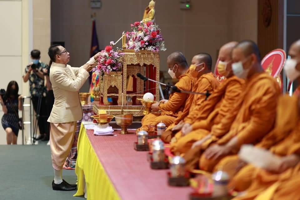 จากนั้นร่วมกันทำบุญตักบาตรข้าวสารอาหารแห้งแด่พระสงฆ์ จำนวน 9 รูป บริเวณลานประติมากรรมหนึ่งเดียวกัน จากนั้นเป็นพิธีเจริญพระพุทธมนต์และบำเพ็ญกุศลทักษิณานุปทานถวายแด่สมเด็จพระมหาสมณเจ้า กรมพระยาวชิรญาณวโรรส จากนั้นผู้เข้าร่วมงานร่วมกันสรงน้ำพระพุทธรูป รดน้ำขอพรผู้สูงอายุ