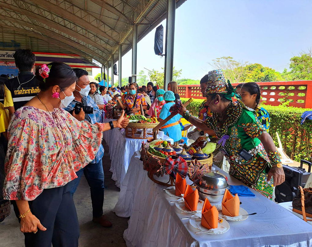 โดยมีผู้ร่วมงานดังต่อไปนี้ นางสาวเอกรัตน์ นาคาคง รองผู้ว่าราชการจังหวัดอ่างทอง นายศักดิ์ดา บรรดาศักดิ์ รองผู้ว่าราชการจังหวัดอ่างทอง นายกเหล่ากาชาด พร้อมด้วยเหล่ากาชาดจังหวัดอ่างทอง นางวาสนา ทองจันทร์ พัฒนาความมั่นคงของมนุษย์ พร้อมด้วยข้าราชการ และผู้สูงอายุที่ถูกคัดเลือก เพื่อเข้าเป็นผู้แทนแต่ละอำเภอจำนวน 300 กว่าราย หลังจากนั้นประธานในพิธีมอบโล่เชิดชูเกียรติและมีผลงานและยอมรับในชุมชน สังคม จำนวน 3 ราย การมอบโล่ประกาศเกียรติคุณแก่ผู้สูงอายุด้านสูงอายุ จำนวน 7 ราย การมอบโล่เชิดชูเกียรติแก่ครอบครัวร่วมเย็น จำนวน 3 ราย และการรดนำขอพร มอบของขวัญตัวแทนผู้สูงอายุ จำนวน 11 คน มอบชุดของขวัญปีใหม่ให้ผู้สูงอายุ มอบของขวัญให้ผู้สูงอายุเนื่องในวันปีใหม่ไทย หลังจากนั้นประธานและคณะเยี่ยมชมบูธ การประกวดแข่งขัน “ส้มตำ 3 วัย” รวมมีทั้งหมด 6 ทีมด้วยกัน เป็นการแข่งขันที่สนุกสนาน ณ. อาคารโดม” “สำนึกบ้านเกิด” องค์การบริหารส่วนจังหวัดอ่างทอง ตำบลป่างิ้ว อำเภอเมืองอ่างทอง จังหวัดอ่างทอง